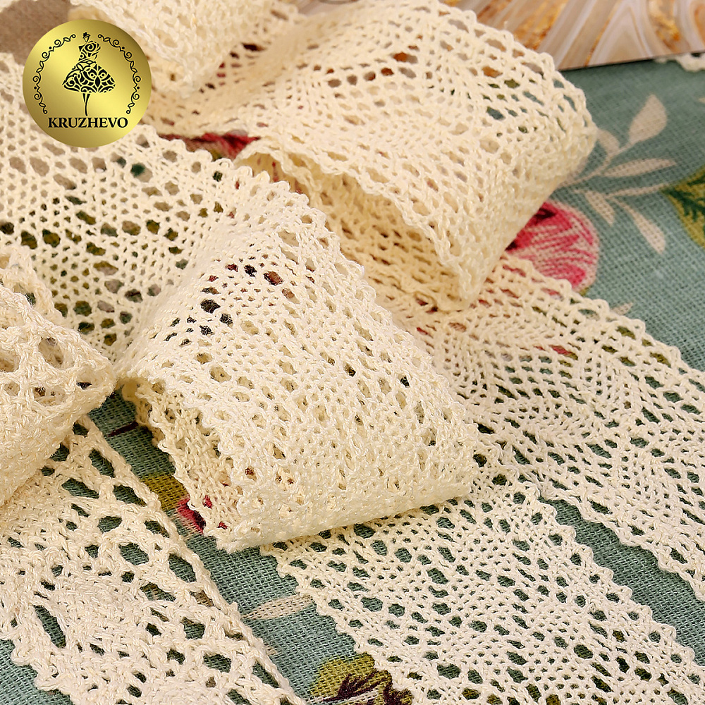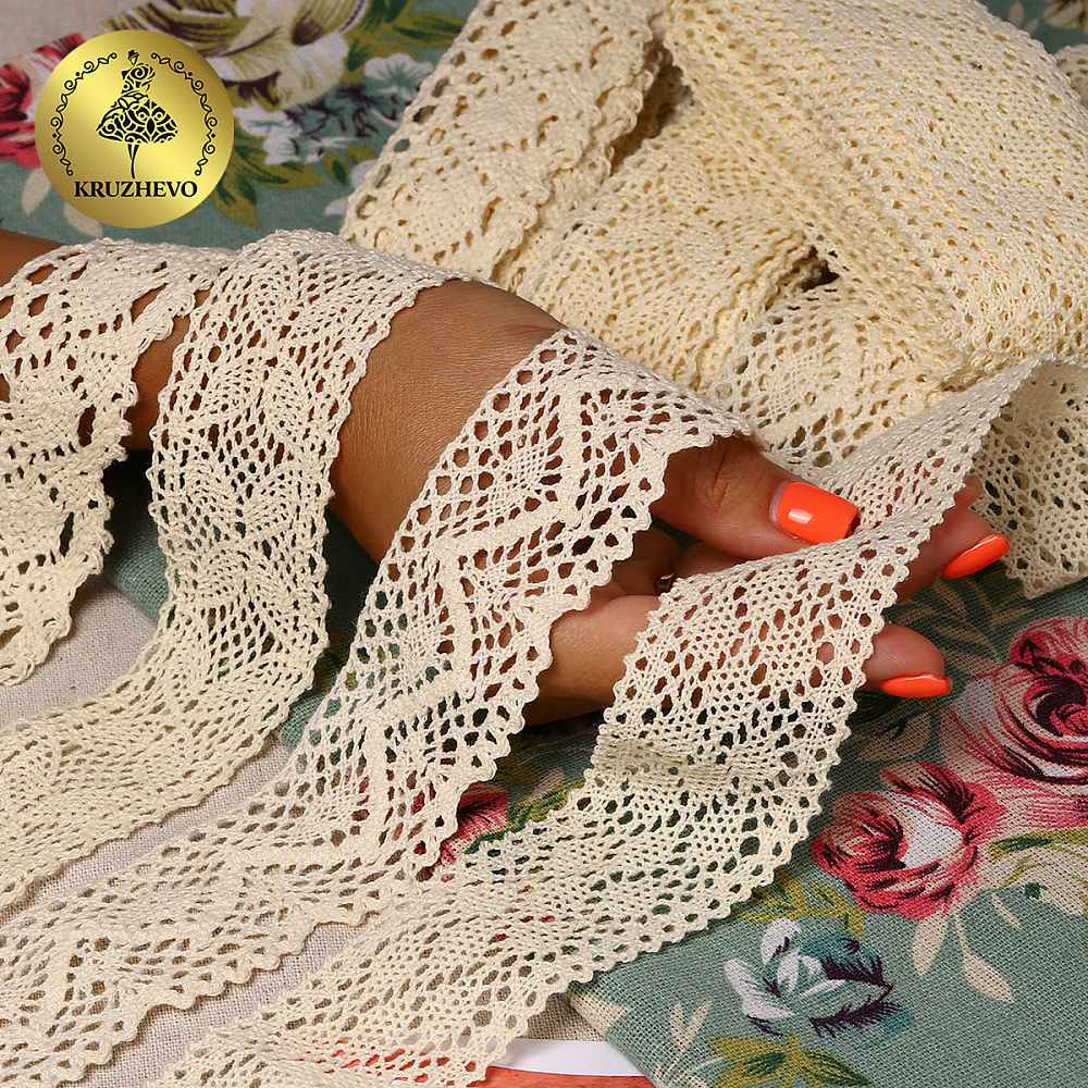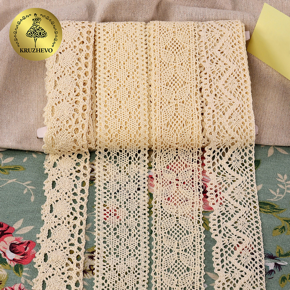 Набор из вязаного кружева от бренда Kruzhevo отличается необычайной элегантностью, красотой и изяществом. В наборе 4 разных дизайна, каждый дизайн по 4,5 метра. Кружево мягкое, приятное на ощупь. Хорошего качества. Широкая сфера использования – от обычного пошива одежды до создания аксессуаров.
