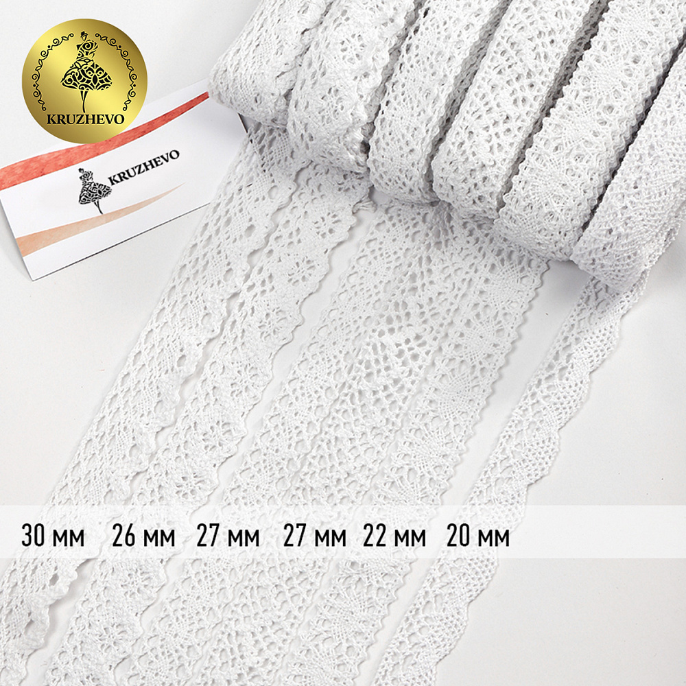 Набор из вязаного кружева от бренда Kruzhevo отличается необычайной элегантностью, красотой и изяществом. В наборе 6 разных дизайнов, каждый дизайн по 2 метра. Кружево мягкое, приятное на ощупь. Хорошего качества. Широкая сфера использования – от обычного пошива одежды до создания аксессуаров.