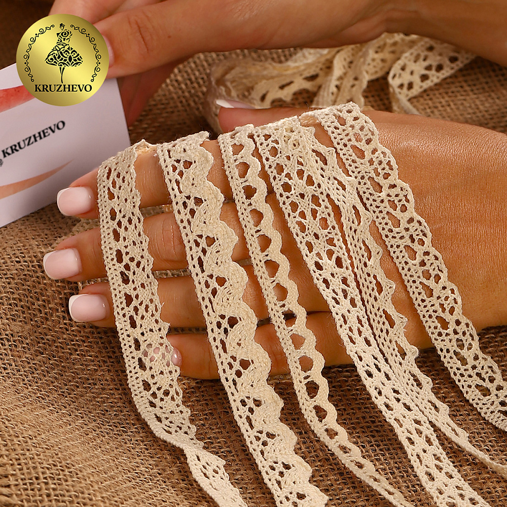 Набор из вязаного кружева от бренда Kruzhevo отличается необычайной элегантностью, красотой и изяществом. В наборе 6 разных дизайнов, каждый дизайн по 4/5 метра. Кружево мягкое, приятное на ощупь. Хорошего качества. Широкая сфера использования – от обычного пошива одежды до создания аксессуаров.