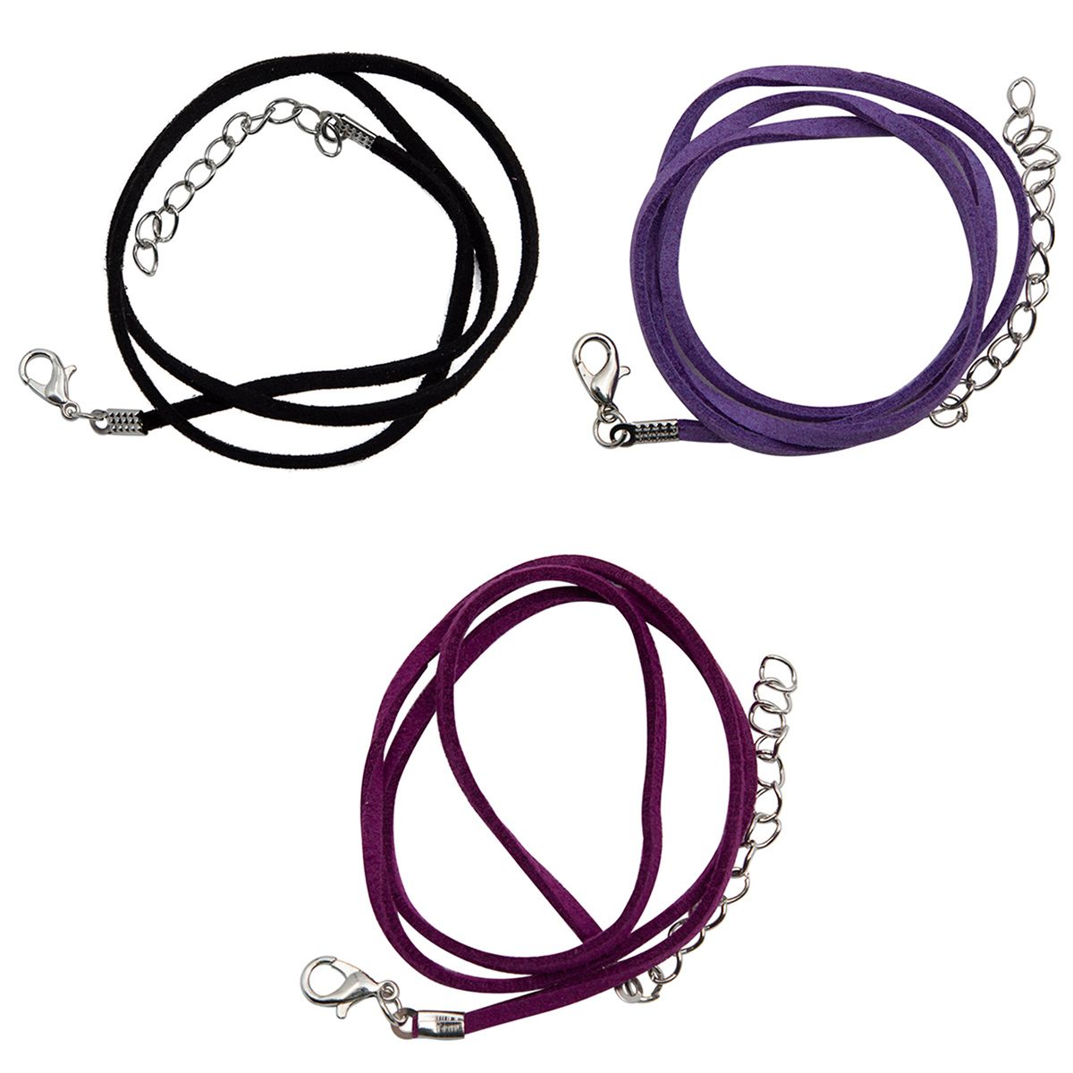 Набор замшевых шнурков для кулонов и подвесок с замком 45см, d-2мм, 3 шт, черно-фиолетовый, Astra&Craft
