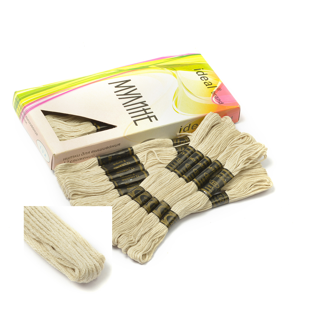 Состав: 24 мотка по 8 метров Нитки мулине Ideal мягкие, ровные, хорошо окрашенные, без ворсистости и утолщений. Крепкая нить, пригодная для вышивания бисером. Бисер Ideal выпускается в тон нитей.