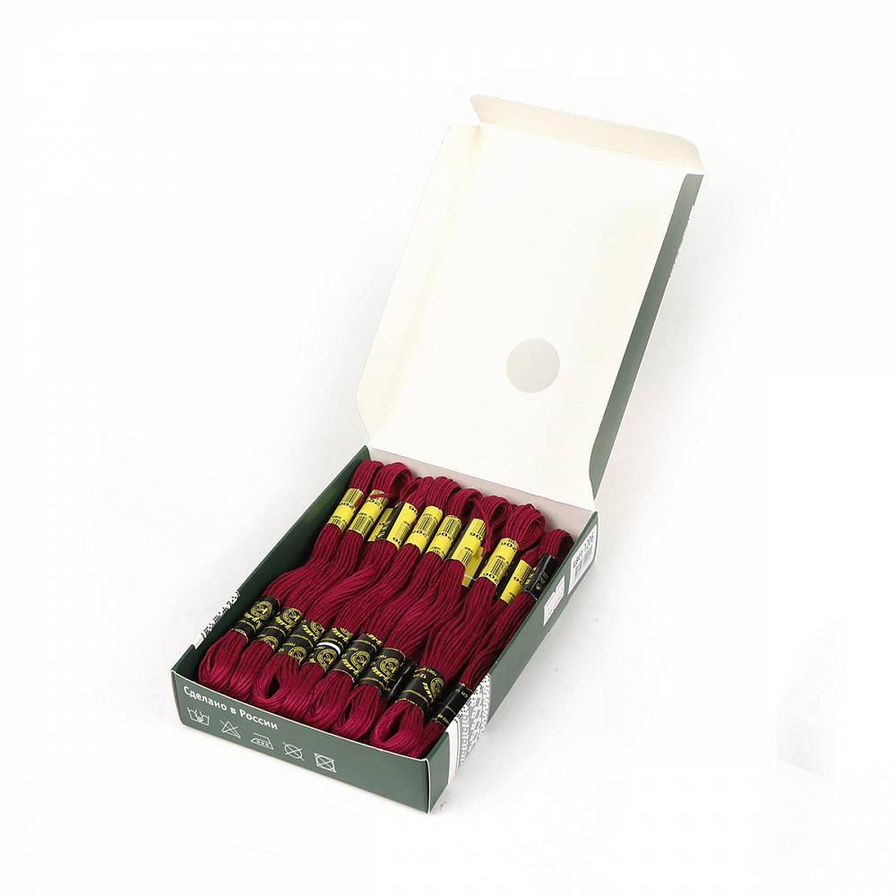 Вышивальные нитки 'Мулине' производятся только из высококачественного тонковолокнистого хлопка, технология химической обработки - мерсеризация- придает ниткам блеск и яркость цветов. Нитки равномерно и мягко ложатся на полотно, устойчивы к влажно - тепловой обработке. Использование современных импортных светопрочных красителей позволяет сохранить окраску вышивальных ниток 'Мулине' при длительном нахождении под прямыми лучами солнца. Нитки равномерно окрашены, без узлов, утолщения и ворсистости. Имеют пологую крутку, поэтому равномерно и мягко ложатся на полотно. Нитки выпускаются по ГОСТу 8402-89 Состав: 100% мерсеризованный хлопок Намотка: 8 м Номинальная линейная плотность: 230текс / 12сложений Основные сферы использования: ручная вышивка и рукоделие Номер цвета и ш/к наносится на каждый моток и на каждую коробочку.