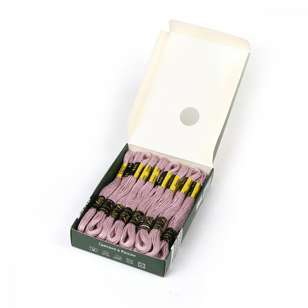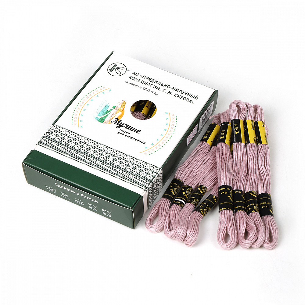 Вышивальные нитки 'Мулине' производятся только из высококачественного тонковолокнистого хлопка, технология химической обработки - мерсеризация- придает ниткам блеск и яркость цветов. Нитки равномерно и мягко ложатся на полотно, устойчивы к влажно - тепловой обработке. Использование современных импортных светопрочных красителей позволяет сохранить окраску вышивальных ниток 'Мулине' при длительном нахождении под прямыми лучами солнца. Нитки равномерно окрашены, без узлов, утолщения и ворсистости. Имеют пологую крутку, поэтому равномерно и мягко ложатся на полотно. Нитки выпускаются по ГОСТу 8402-89 Состав: 100% мерсеризованный хлопок Намотка: 8 м Номинальная линейная плотность: 230текс / 12сложений Основные сферы использования: ручная вышивка и рукоделие Номер цвета и ш/к наносится на каждый моток и на каждую коробочку.