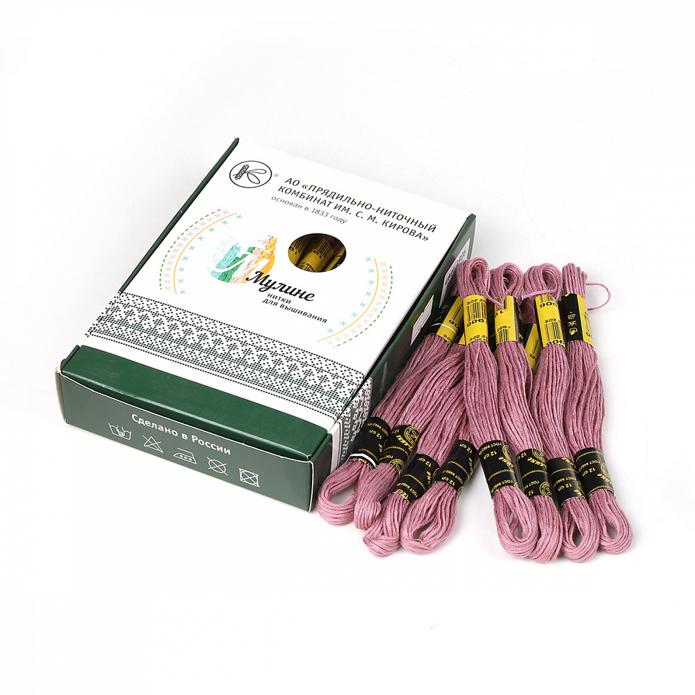 Вышивальные нитки 'Мулине' производятся только из высококачественного тонковолокнистого хлопка, технология химической обработки - мерсеризация- придает ниткам блеск и яркость цветов. Нитки равномерно и мягко ложатся на полотно, устойчивы к влажно - тепловой обработке. Использование современных импортных светопрочных красителей позволяет сохранить окраску вышивальных ниток 'Мулине' при длительном нахождении под прямыми лучами солнца. Нитки равномерно окрашены, без узлов, утолщения и ворсистости. Имеют пологую крутку, поэтому равномерно и мягко ложатся на полотно. Нитки выпускаются по ГОСТу 8402-89 Состав: 100% мерсеризованный хлопок Намотка: 8 м Номинальная линейная плотность: 230текс / 12сложений Основные сферы использования: ручная вышивка и рукоделие Номер цвета и ш/к наносится на каждый моток и на каждую коробочку.