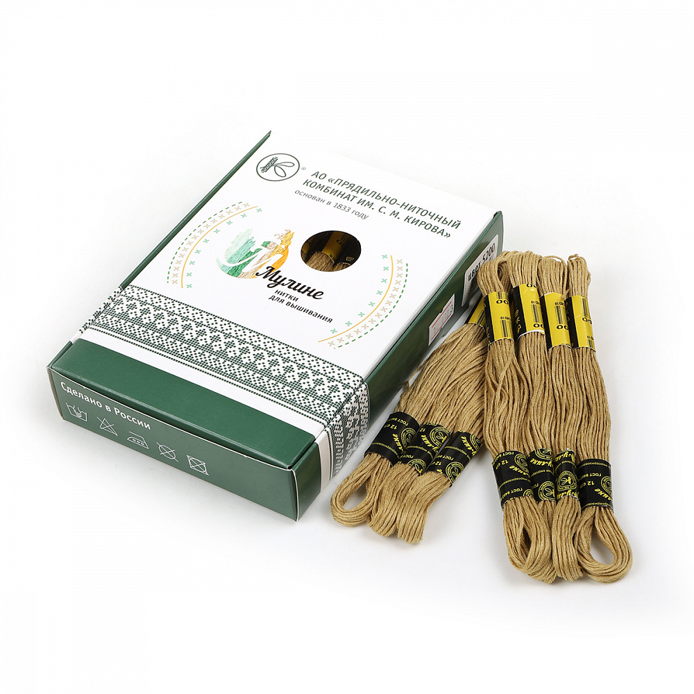 Вышивальные нитки 'Мулине' производятся только из высококачественного тонковолокнистого хлопка, технология химической обработки - мерсеризация- придает ниткам блеск и яркость цветов. Нитки равномерно и мягко ложатся на полотно, устойчивы к влажно - тепловой обработке. Использование современных импортных светопрочных красителей позволяет сохранить окраску вышивальных ниток 'Мулине' при длительном нахождении под прямыми лучами солнца. Нитки равномерно окрашены, без узлов, утолщения и ворсистости. Имеют пологую крутку, поэтому равномерно и мягко ложатся на полотно. Нитки выпускаются по ГОСТу 8402-89 Состав: 100% мерсеризованный хлопок Намотка: 8 м Номинальная линейная плотность: 230текс / 12сложений Основные сферы использования: ручная вышивка и рукоделие Номер цвета и ш/к наносится на каждый моток и на каждую коробочку.