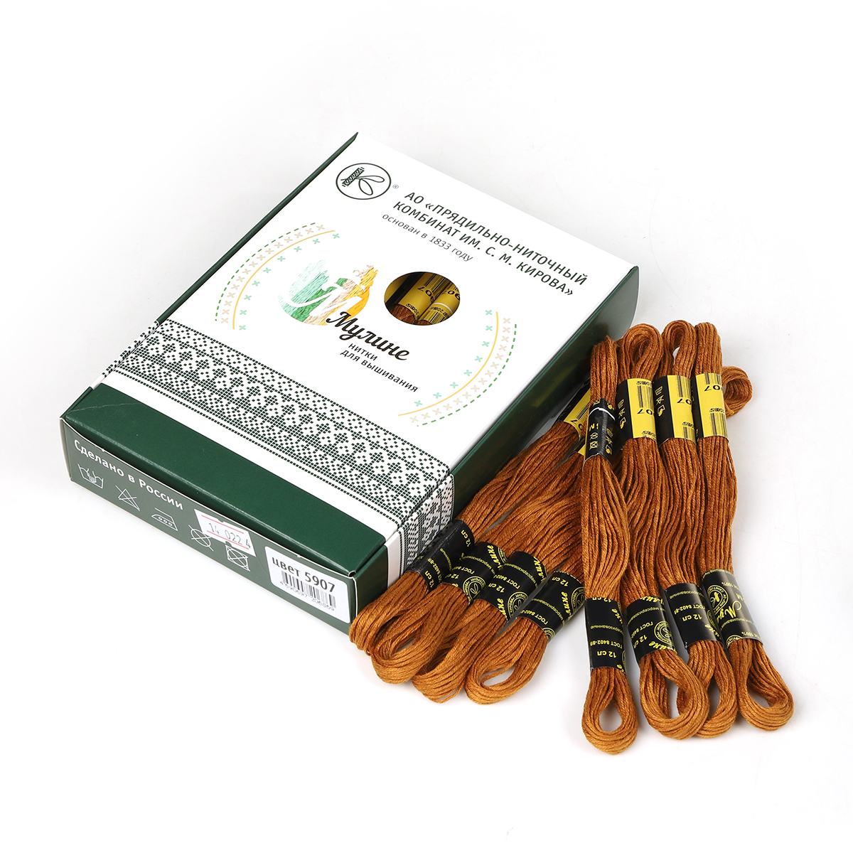 Мулине ПНК им.Кирова цв.5907 коричневый, 24 мотка по 8 метров