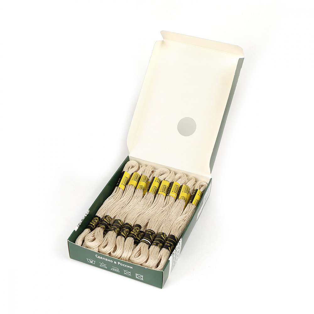 Вышивальные нитки 'Мулине' производятся только из высококачественного тонковолокнистого хлопка, технология химической обработки - мерсеризация- придает ниткам блеск и яркость цветов. Нитки равномерно и мягко ложатся на полотно, устойчивы к влажно - тепловой обработке. Использование современных импортных светопрочных красителей позволяет сохранить окраску вышивальных ниток 'Мулине' при длительном нахождении под прямыми лучами солнца. Нитки равномерно окрашены, без узлов, утолщения и ворсистости. Имеют пологую крутку, поэтому равномерно и мягко ложатся на полотно. Нитки выпускаются по ГОСТу 8402-89 Состав: 100% мерсеризованный хлопок Намотка: 8 м Номинальная линейная плотность: 230текс / 12сложений Основные сферы использования: ручная вышивка и рукоделие Номер цвета и ш/к наносится на каждый моток и на каждую коробочку.