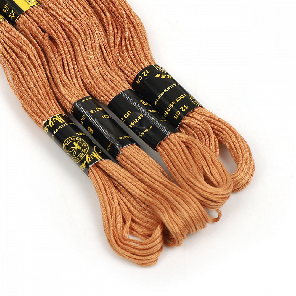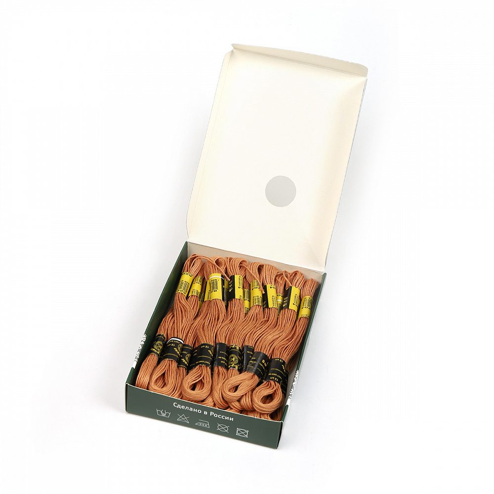 Вышивальные нитки 'Мулине' производятся только из высококачественного тонковолокнистого хлопка, технология химической обработки - мерсеризация- придает ниткам блеск и яркость цветов. Нитки равномерно и мягко ложатся на полотно, устойчивы к влажно - тепловой обработке. Использование современных импортных светопрочных красителей позволяет сохранить окраску вышивальных ниток 'Мулине' при длительном нахождении под прямыми лучами солнца. Нитки равномерно окрашены, без узлов, утолщения и ворсистости. Имеют пологую крутку, поэтому равномерно и мягко ложатся на полотно. Нитки выпускаются по ГОСТу 8402-89 Состав: 100% мерсеризованный хлопок Намотка: 8 м Номинальная линейная плотность: 230текс / 12сложений Основные сферы использования: ручная вышивка и рукоделие Номер цвета и ш/к наносится на каждый моток и на каждую коробочку.