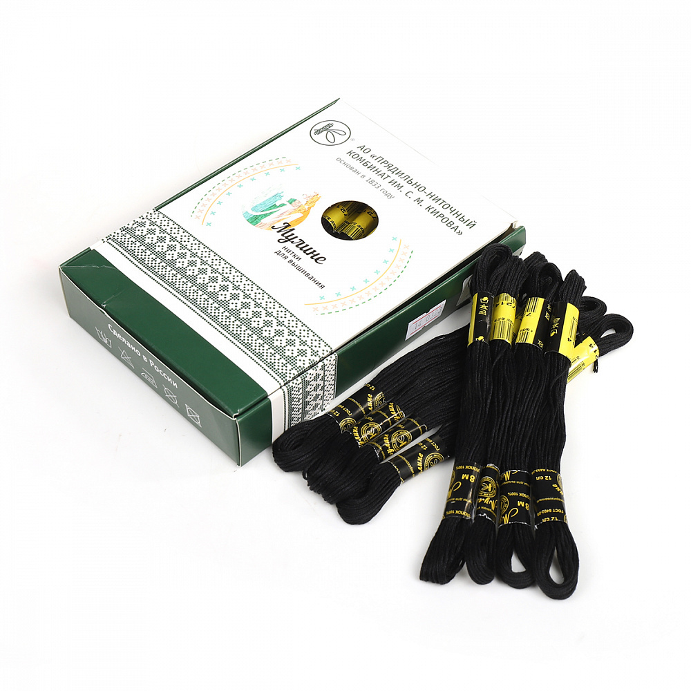 Мулине ПНК им.Кирова цв.7214 черный, 24 мотка по 8 метров