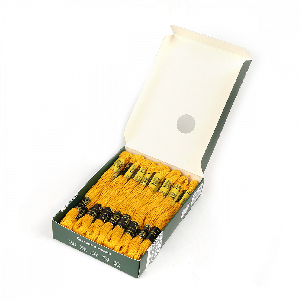 Вышивальные нитки 'Мулине' производятся только из высококачественного тонковолокнистого хлопка, технология химической обработки - мерсеризация- придает ниткам блеск и яркость цветов. Нитки равномерно и мягко ложатся на полотно, устойчивы к влажно - тепловой обработке. Использование современных импортных светопрочных красителей позволяет сохранить окраску вышивальных ниток 'Мулине' при длительном нахождении под прямыми лучами солнца. Нитки равномерно окрашены, без узлов, утолщения и ворсистости. Имеют пологую крутку, поэтому равномерно и мягко ложатся на полотно. Нитки выпускаются по ГОСТу 8402-89 Состав: 100% мерсеризованный хлопок Намотка: 8 м Номинальная линейная плотность: 230текс / 12сложений Основные сферы использования: ручная вышивка и рукоделие Номер цвета и ш/к наносится на каждый моток и на каждую коробочку.