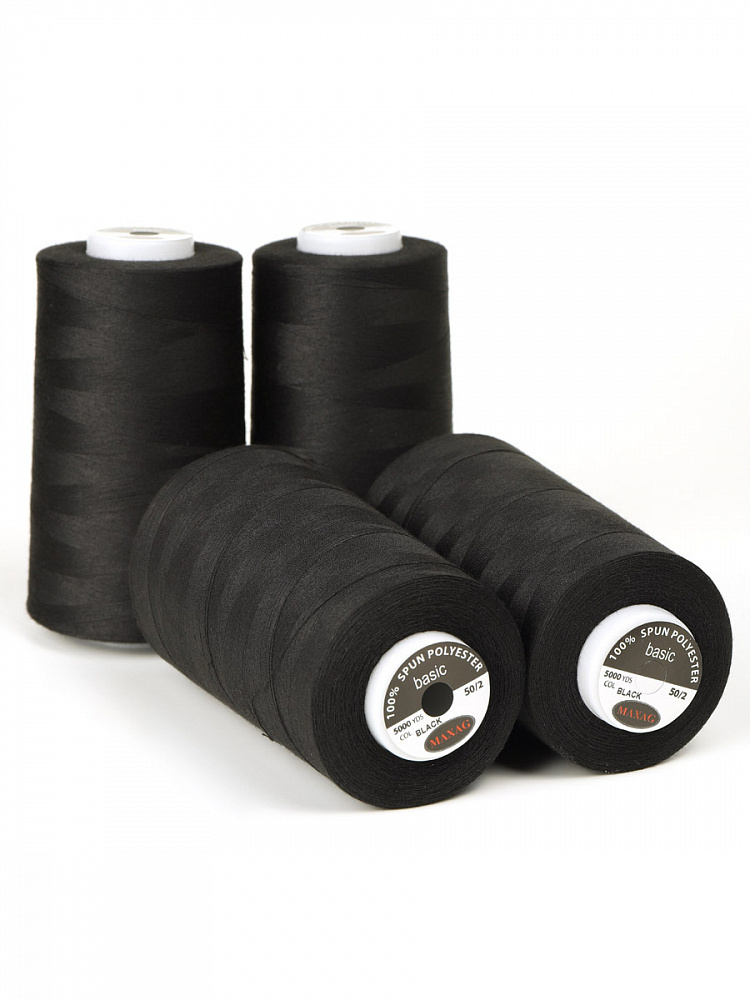 Нитки швейные Max 50/2, 4570 м (5000 ярд), 000 черный / 4 бобины