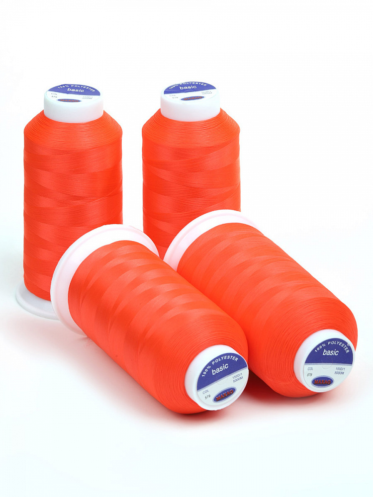 Нитки швейные текстурированные Max, 150D/1, 5000 м, 90г, 579 яр.оранж неон, 4 катушки
