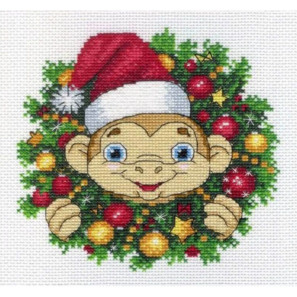 Набор для вышивания нитками МП Студия, Набор для вышивания мулине 16х16см Обезьянка. Новый Год