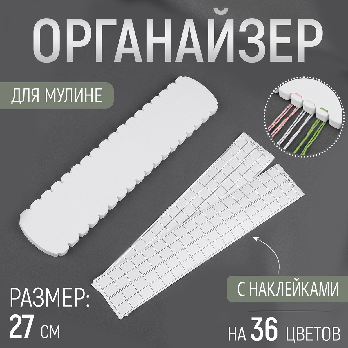 Органайзер для мулине 36 цветов 27см EVA белый, 9242666