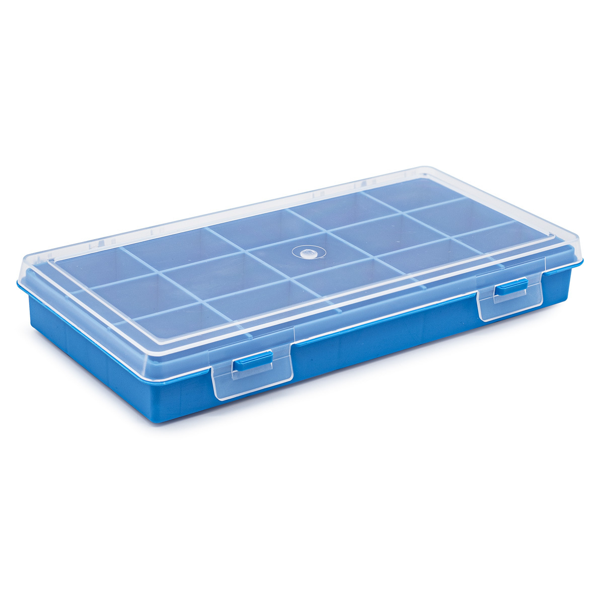 Этот органайзер подходит для хранения различных мелочей: – бусин; – принадлежностей для шитья и рукоделия; – пуговиц; – бисера; – фурнитуры; – небольших остатков тесьмы, кружева; – рыболовных принадлежностей; – лекарств; – различных дорожных мелочей; – швейных или маникюрных принадлежностей. Крышка из прозрачного пластика позволяет видеть содержимое. Органайзер защелкивается на две клипсы, поэтому при транспортировке ничего не выпадет. Возьмите органайзер с собой в дорогу, чтобы иметь под рукой все необходимое. Внутри 15 ячеек. Размер: 24х13х3,5 см.