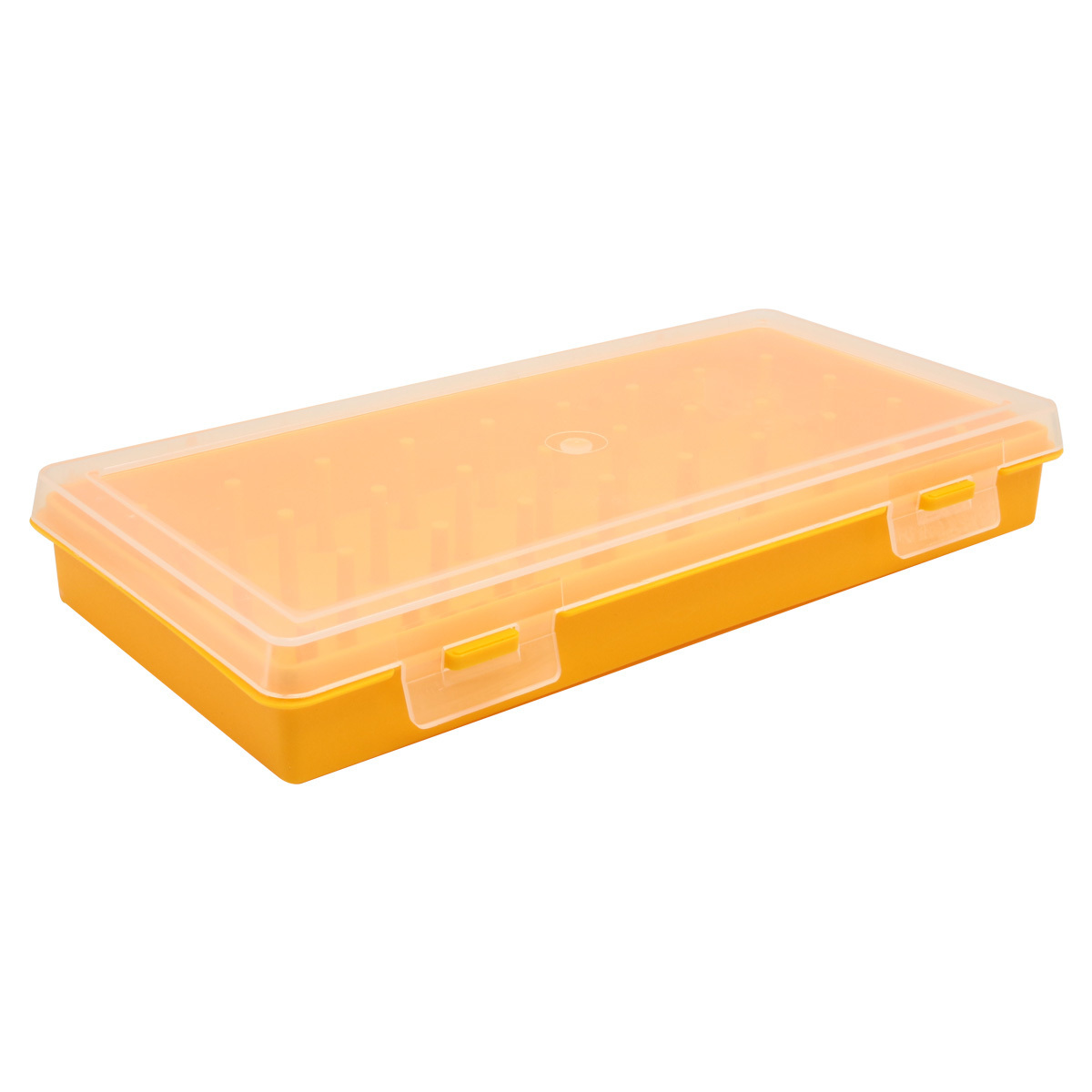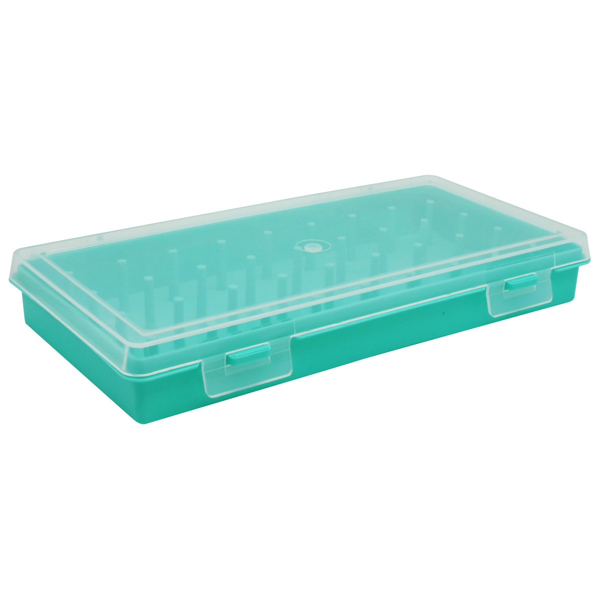 Вместительный пластиковый органайзер позволяет аккуратно расположить шпульки с нитками разных типов и цветов. Удобен при хранении и транспортировке – шпульки всегда будут под рукой. Крышка из полупрозрачного пластика позволяет видеть содержимое и плотно закрывается на две клипсы. Этот органайзер пригодится любителям шитья и машинной вышивки. Количество секций для шпулек: 36. Максимальное количество шпулек: 72 (по 2 шпульки на секцию). Размер: 24х13х3,5 сантиметров. Изготовлен из качественного полипропилена. Производитель: PolymerBOX.