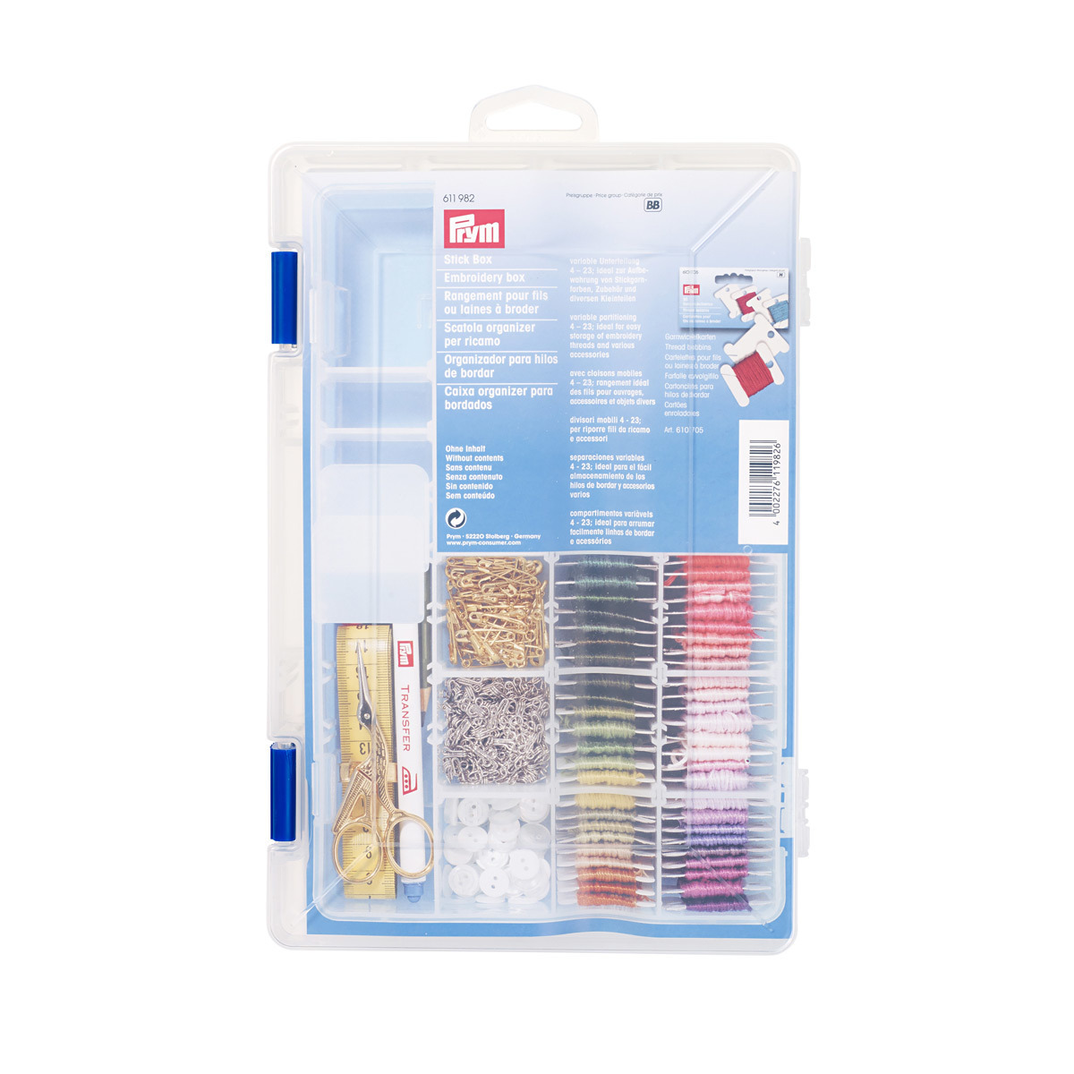 Органайзер из прозрачного пластика. Крышка закрывается на защелку, внутри 4 несмещаемые перегородки. В комплекте прилагаются 18 разделителей, что позволяет самостоятельно менять количество ячеек (до 23 ячеек). Используется для хранения различных мелочей: бисера, швейных принадлежностей, пуговиц и др. Разработано немецкой компанией Prym, известным мировым лидером в производстве высококачественных принадлежностей для шитья и рукоделия. Ежедневно используя продукцию Prym, Вы ощутите заботу компании о Вашем комфорте и удобстве. Воплощайте любую Вашу творческую идею с безупречным материалом Prym! Шейте с удовольствием, радуйте модными шедеврами себя и своих близких! Размер: 28х19х4,5 см.