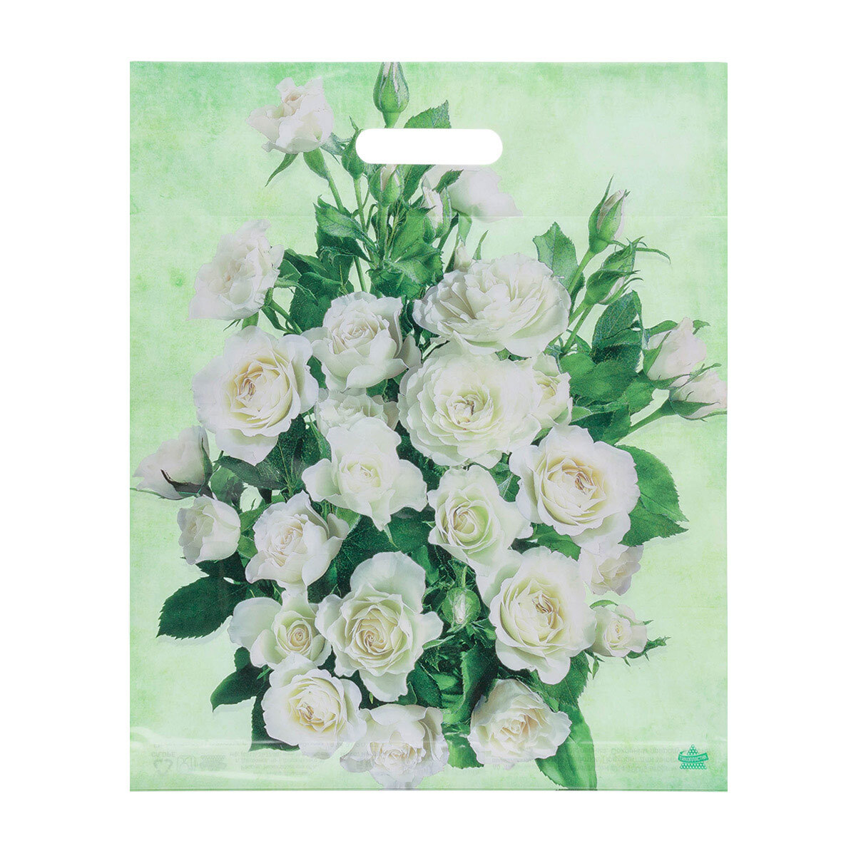 Пакет "Белые розы", п/э с вырубной ручкой, 38х45см, 60мкм, 7669442