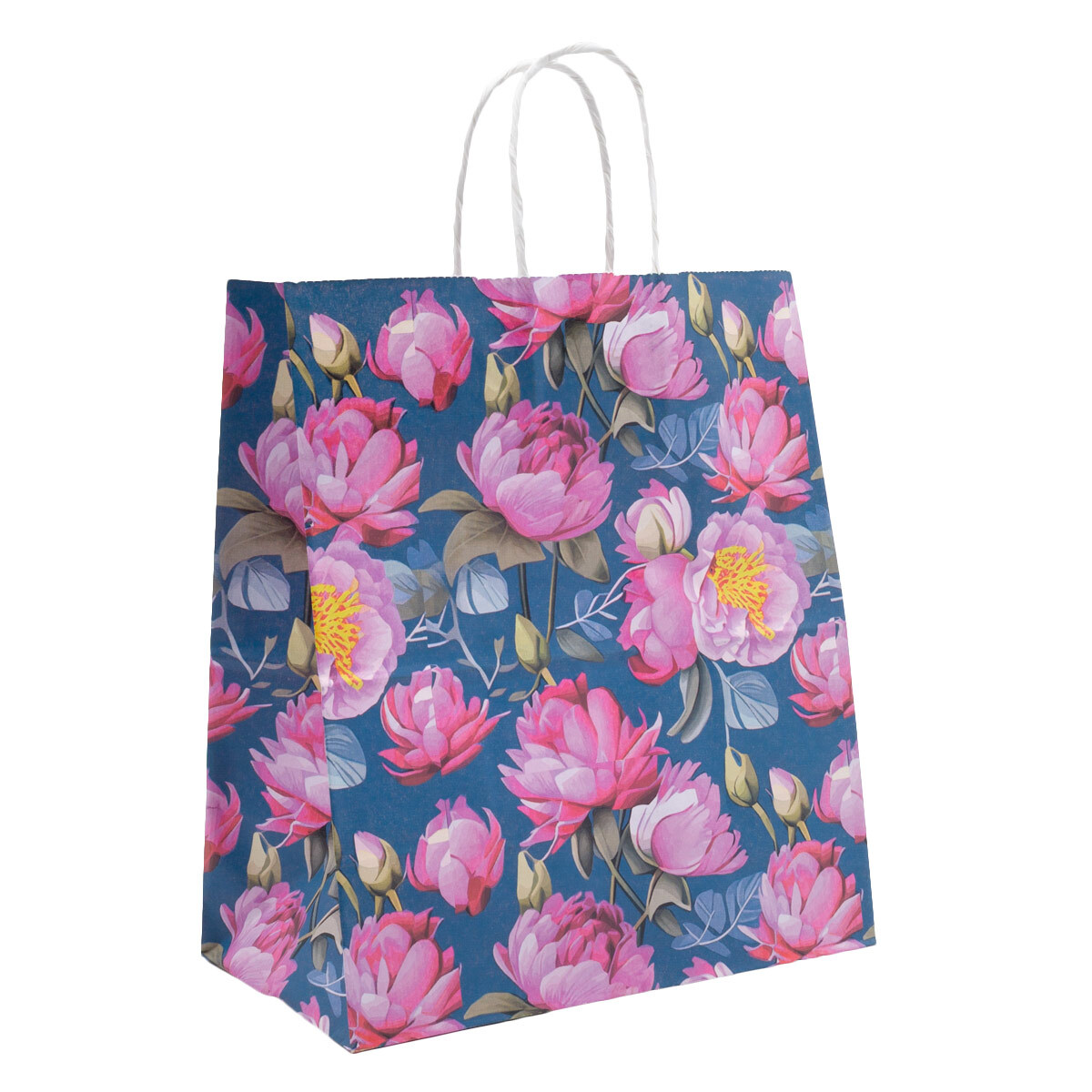 Пакет бумажный, крафт, 100 г/м², 25х22х12см, "Пионы", 10320621