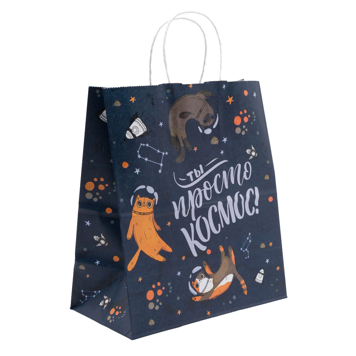 Пакет бумажный, крафт, 100 г/м² 25х22х12см, "Ты просто космос", 10320629