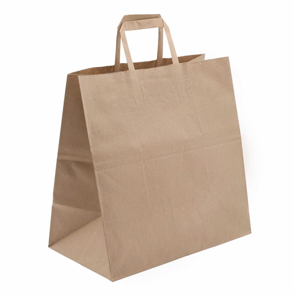 Пакет бумажный крафт, плоская ручка, 32х18х32см, 90 г/м², 10320613, 25 шт