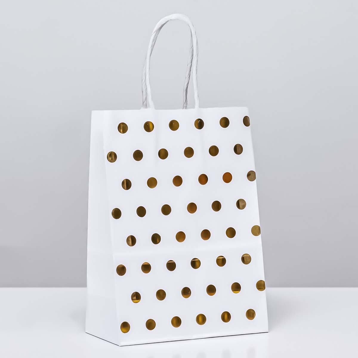 Пакет крафт с золотым тиснением, круглая ручка, белый, 15х21х8см, 120г, 9918409, 12 шт