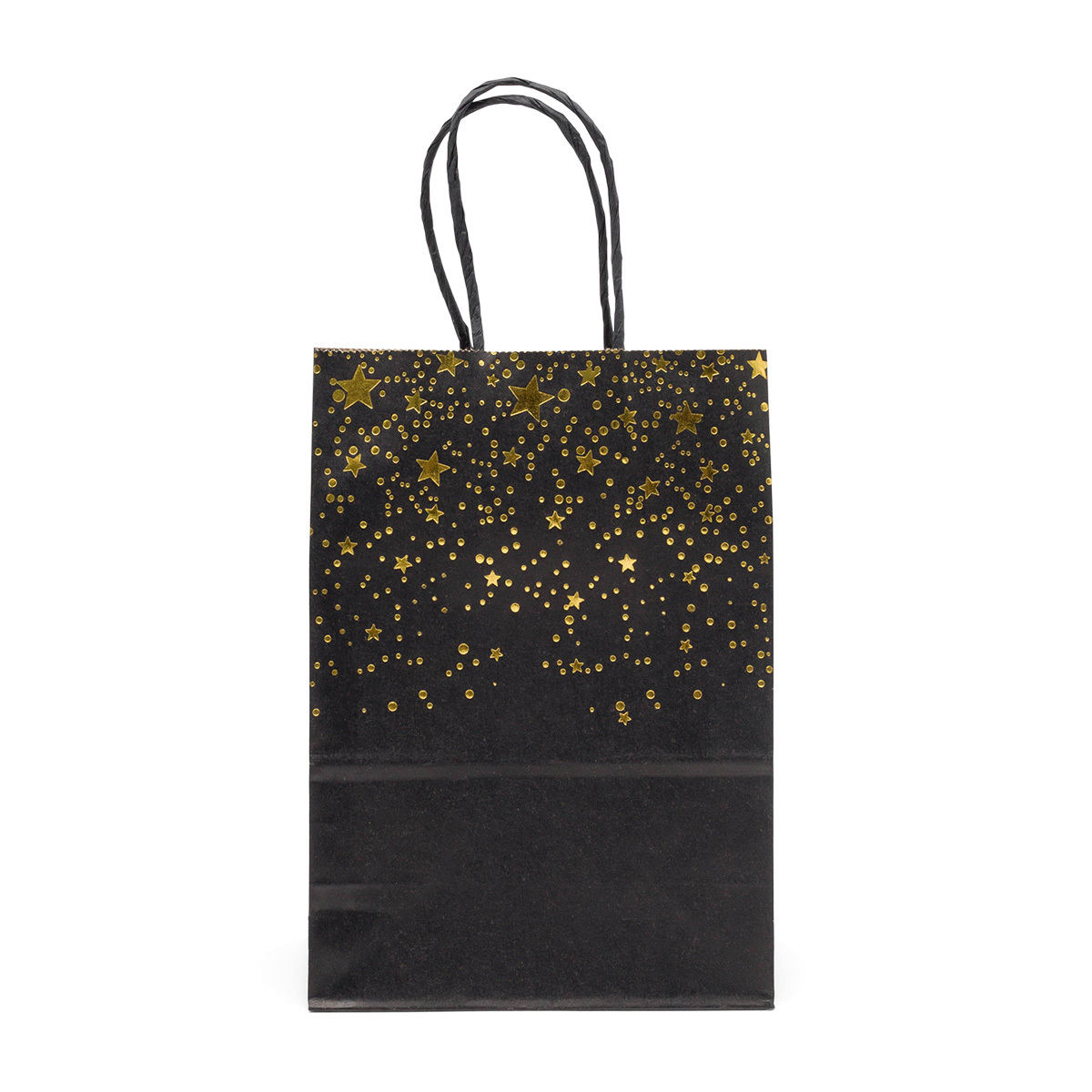 Пакет крафт "Звёзды", черный, 21х15х8см, 9918396, 12 шт