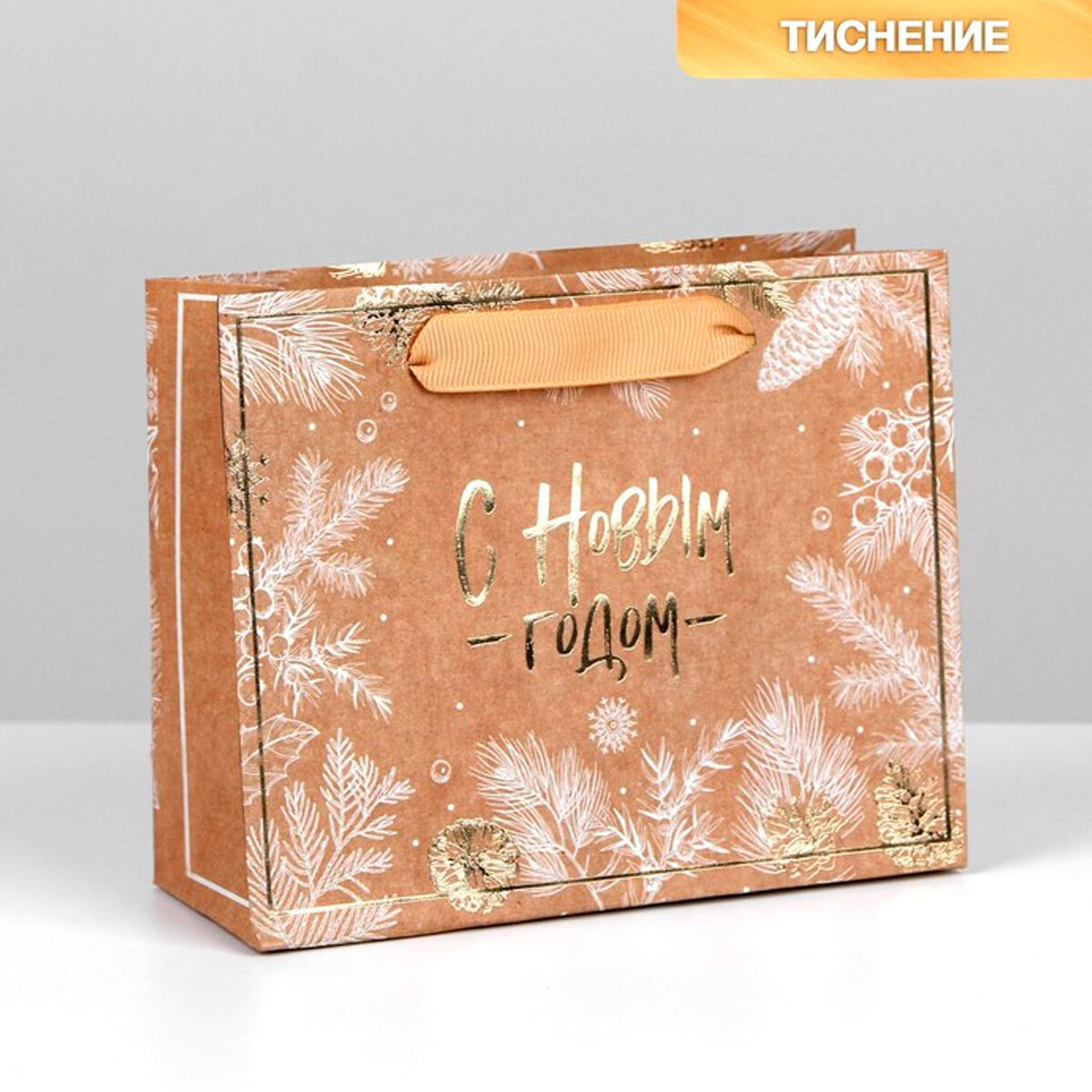 Пакет крафтовый горизонтальный "С Новым годом", S 15х12х5.5 см, 4865534