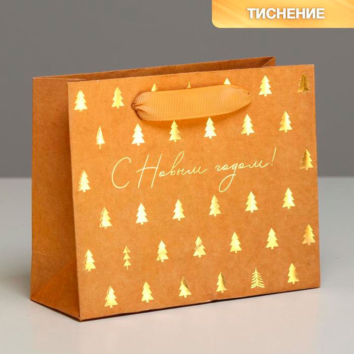 Пакет крафтовый горизонтальный "Ёлочки", S 15х12х5.5 см, 4865477