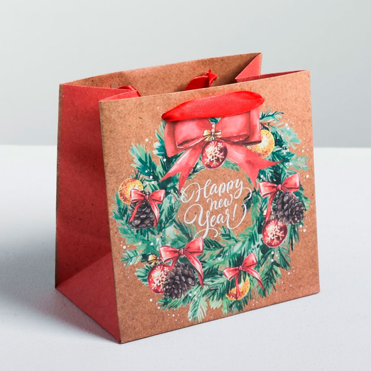 Пакет крафтовый квадратный "С Новым годом", 14х14х9 см, 4275575
