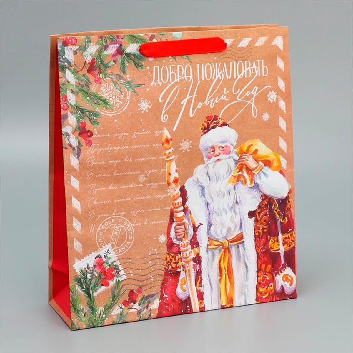 Пакет крафтовый вертикальный "Почта Деда Мороза", M 26х30х9 см, 9564907