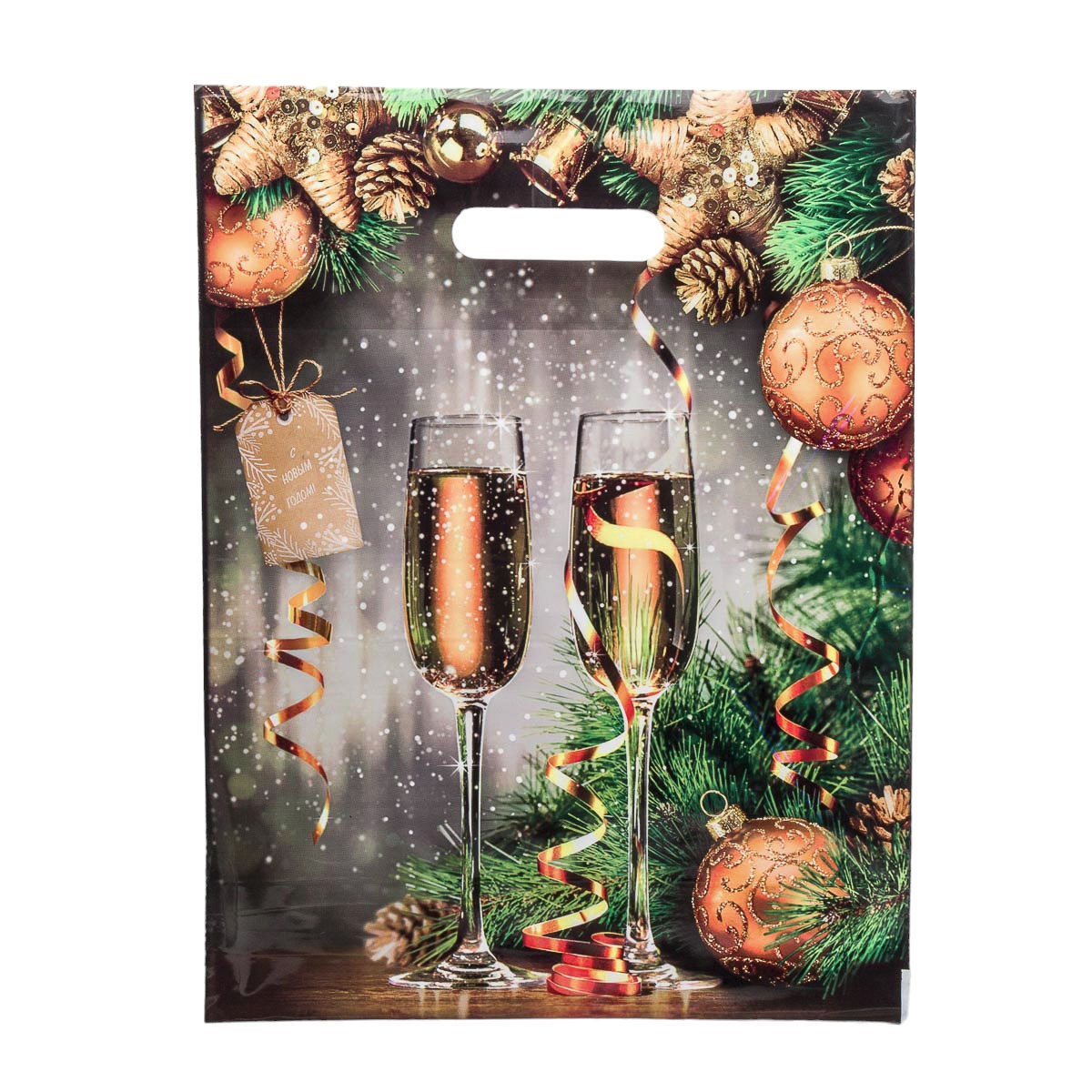 Пакет "Звон бокалов", полиэтиленовый с вырубной ручкой, 31х40см, 60мкм, 3779409, 50 шт