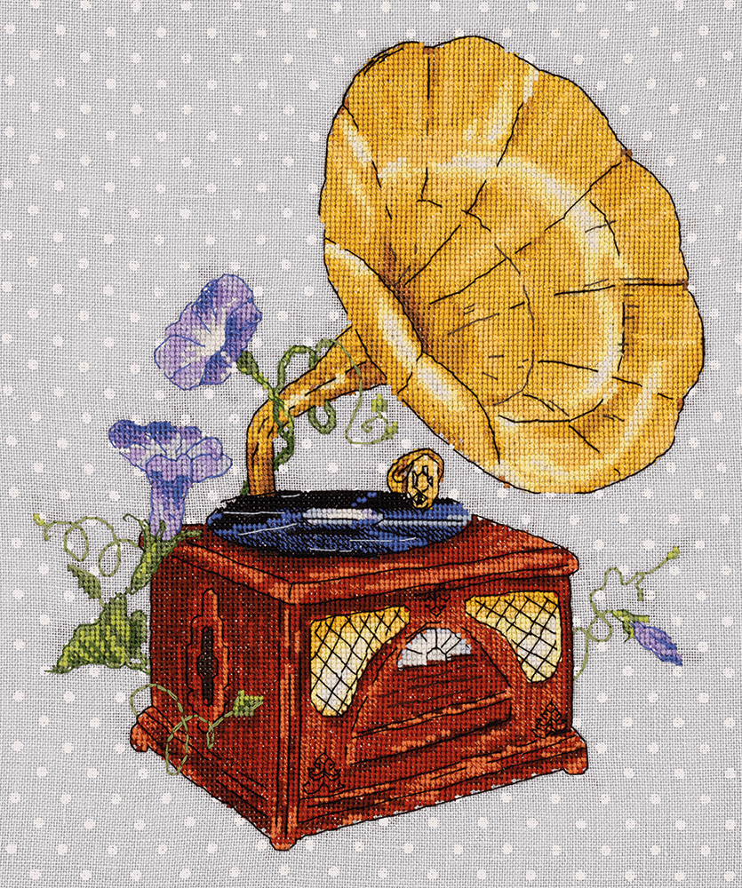 Набор для вышивания нитками Panna, Мелодия сада. Граммофон (канва в горошек), 24х27 см