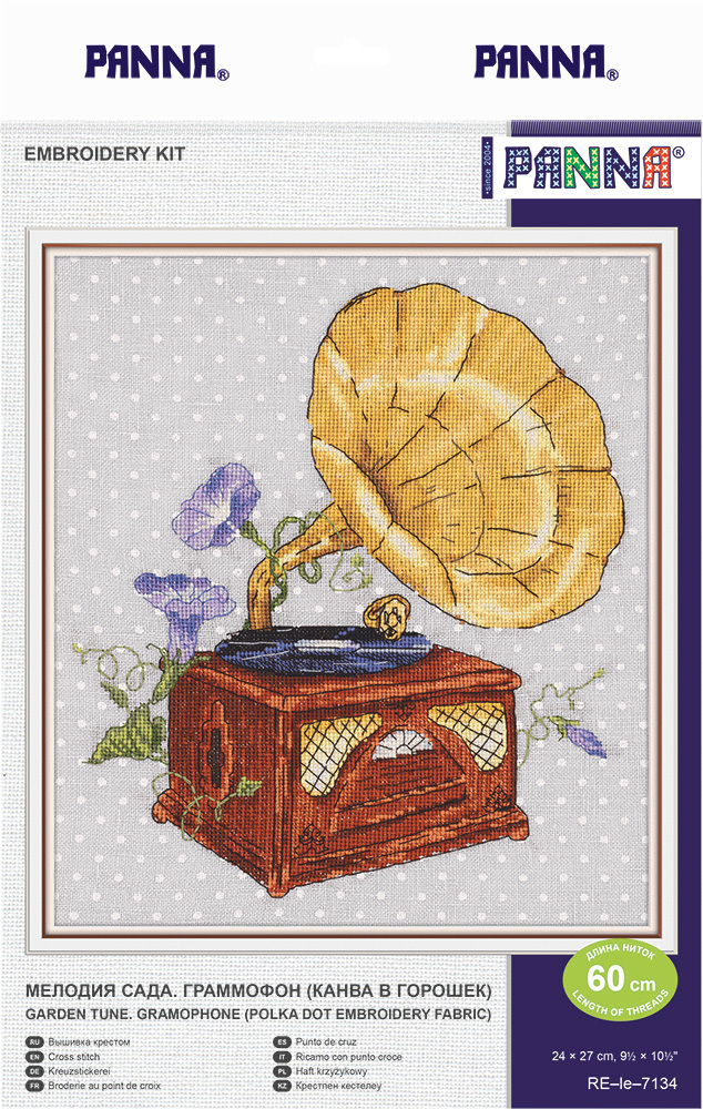Набор для вышивания крестом Panna, Мелодия сада. Граммофон (канва в горошек), 24x27 см, RE-le-7134