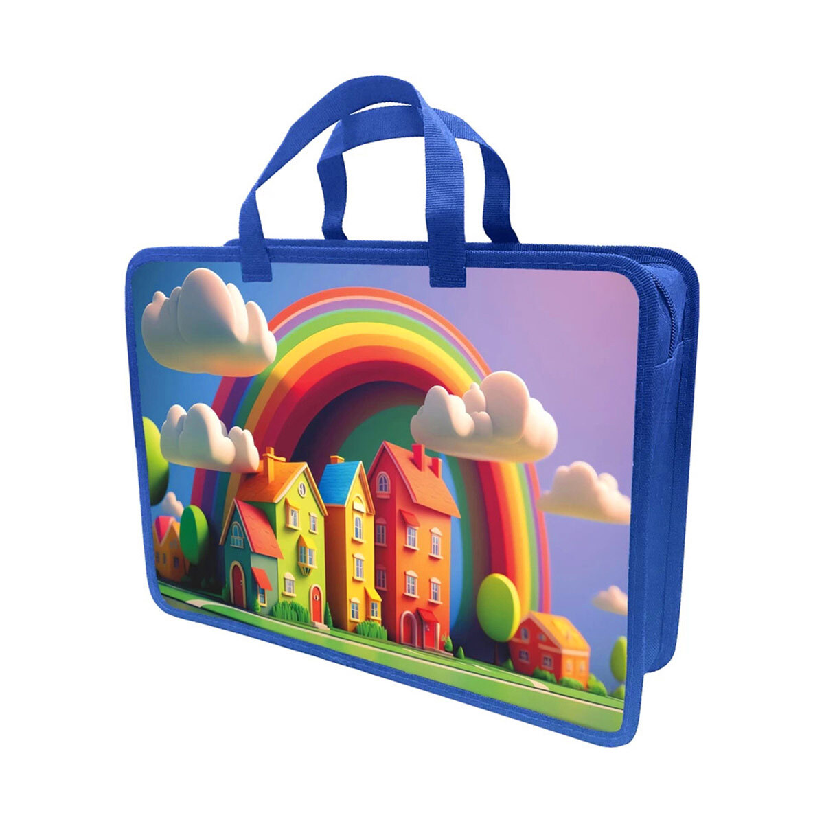 Папка-портфель Сказочные домики A4, 1отд., на молнии, с ручками, печ. по пласт. с 2х ст., LAMARK035