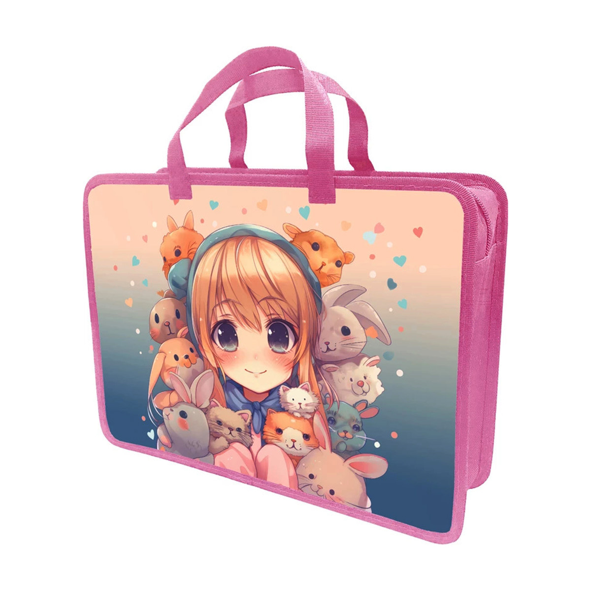 Папка-портфель Ушки A4, 1 отд., на молнии, с ручками, печать по пласт. с 2х ст., LAMARK035