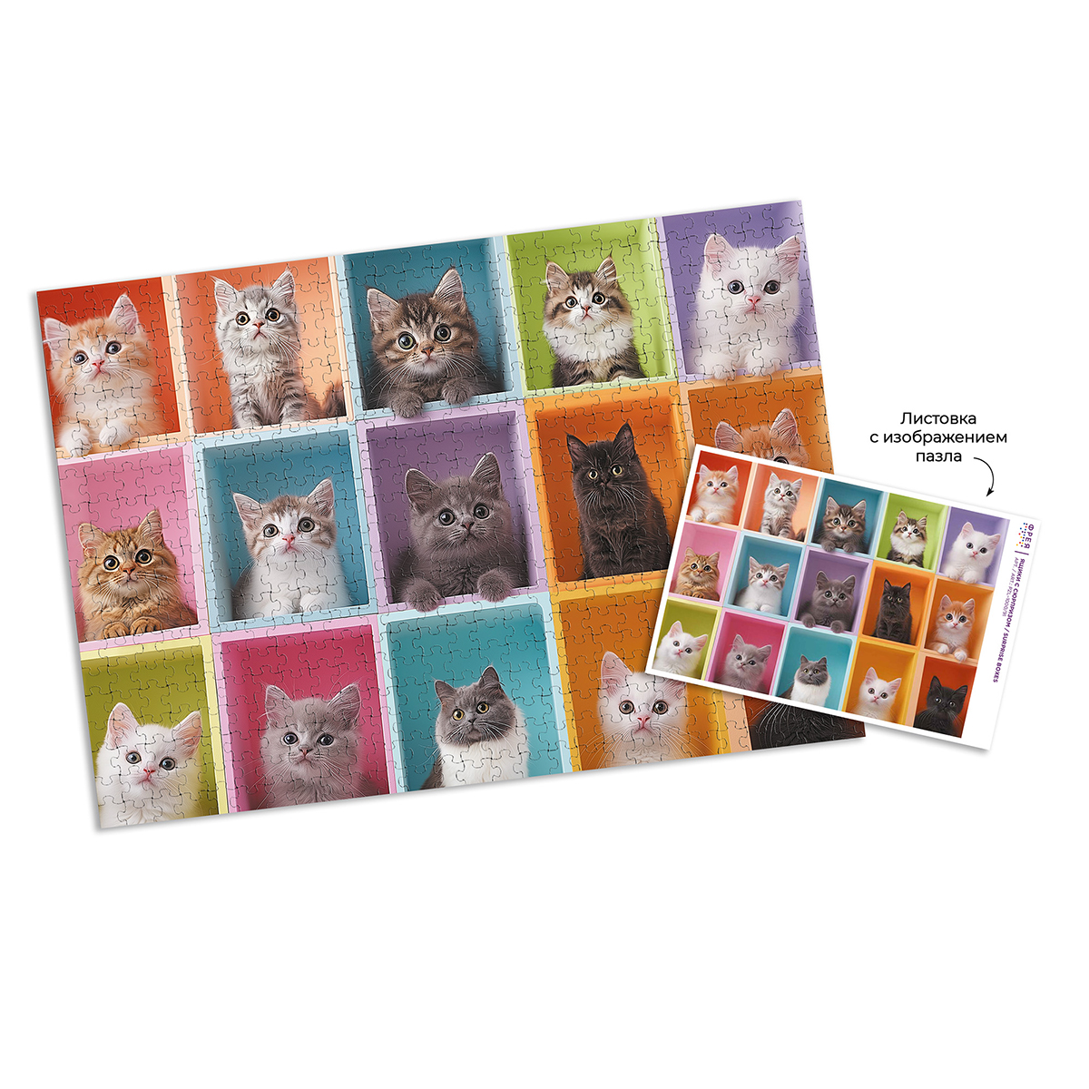 Каждый пазл упакован в картонную коробку, внутри коробки элементы мозаики хранятся в запаянном пакете, что предотвращает их рассыпание в процессе транспортировки.