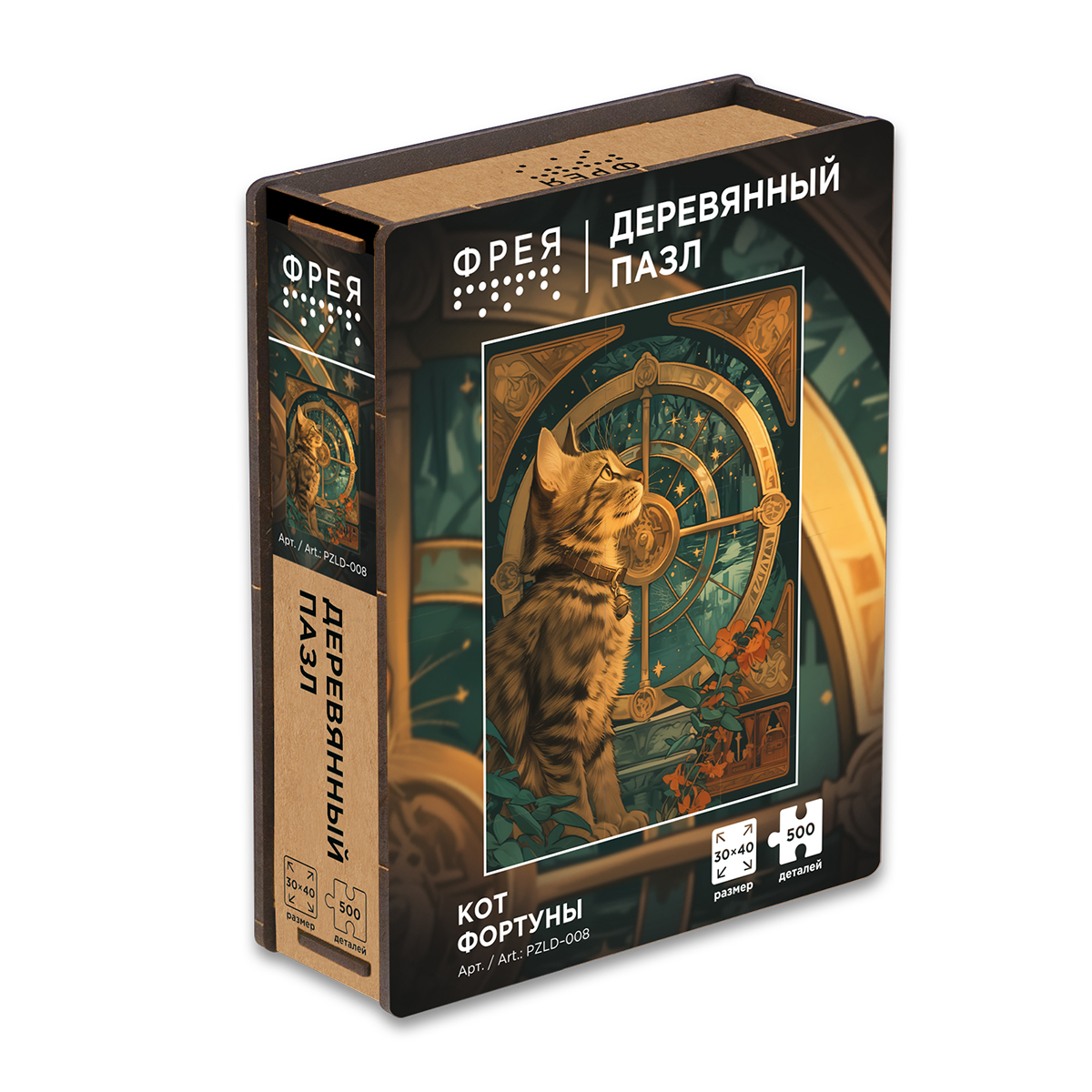 Пазл деревянный 500 элементов, PZLD-008 Кот Фортуны, Фрея