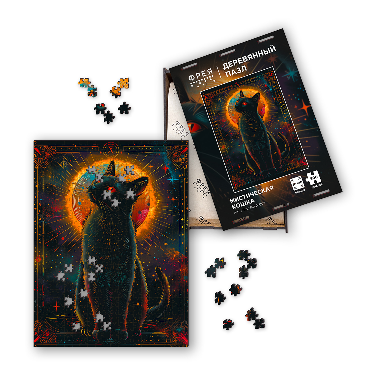 Пазл деревянный 500 элементов, PZLD-007 Мистическая кошка, Фрея