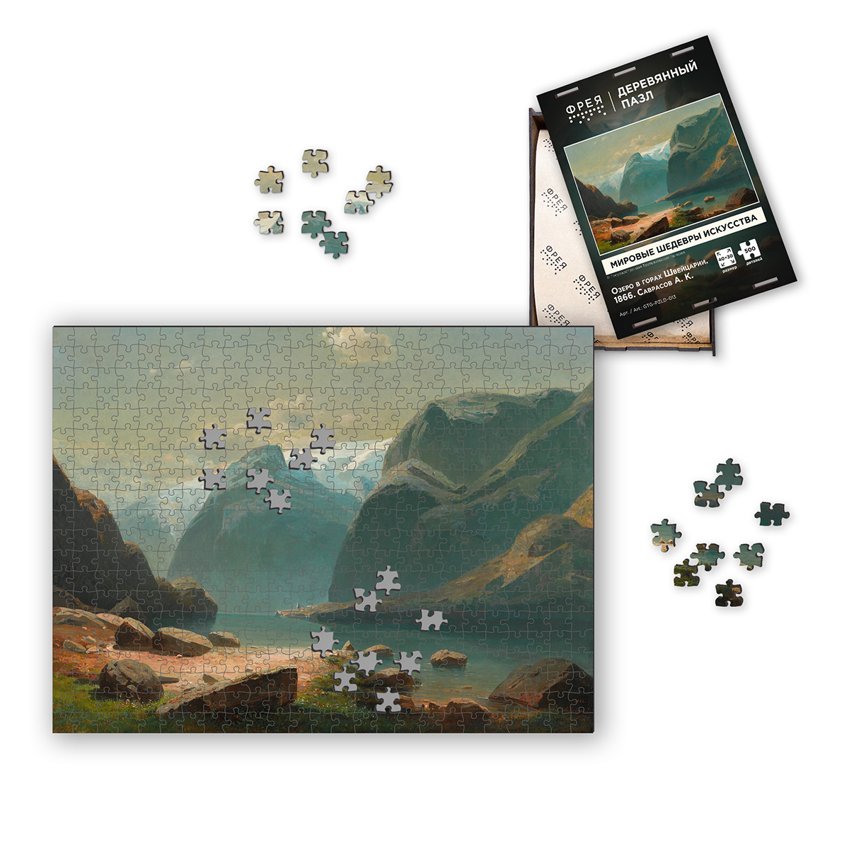 Пазл деревянный 500 элементов, GTG-PZLD-013 Озеро в горах Швейцарии. 1866. Саврасов А.К., Фрея