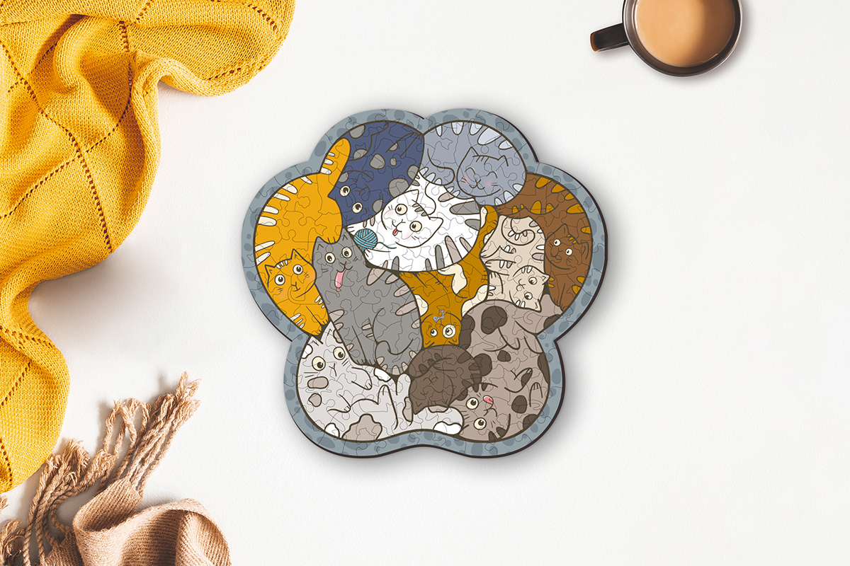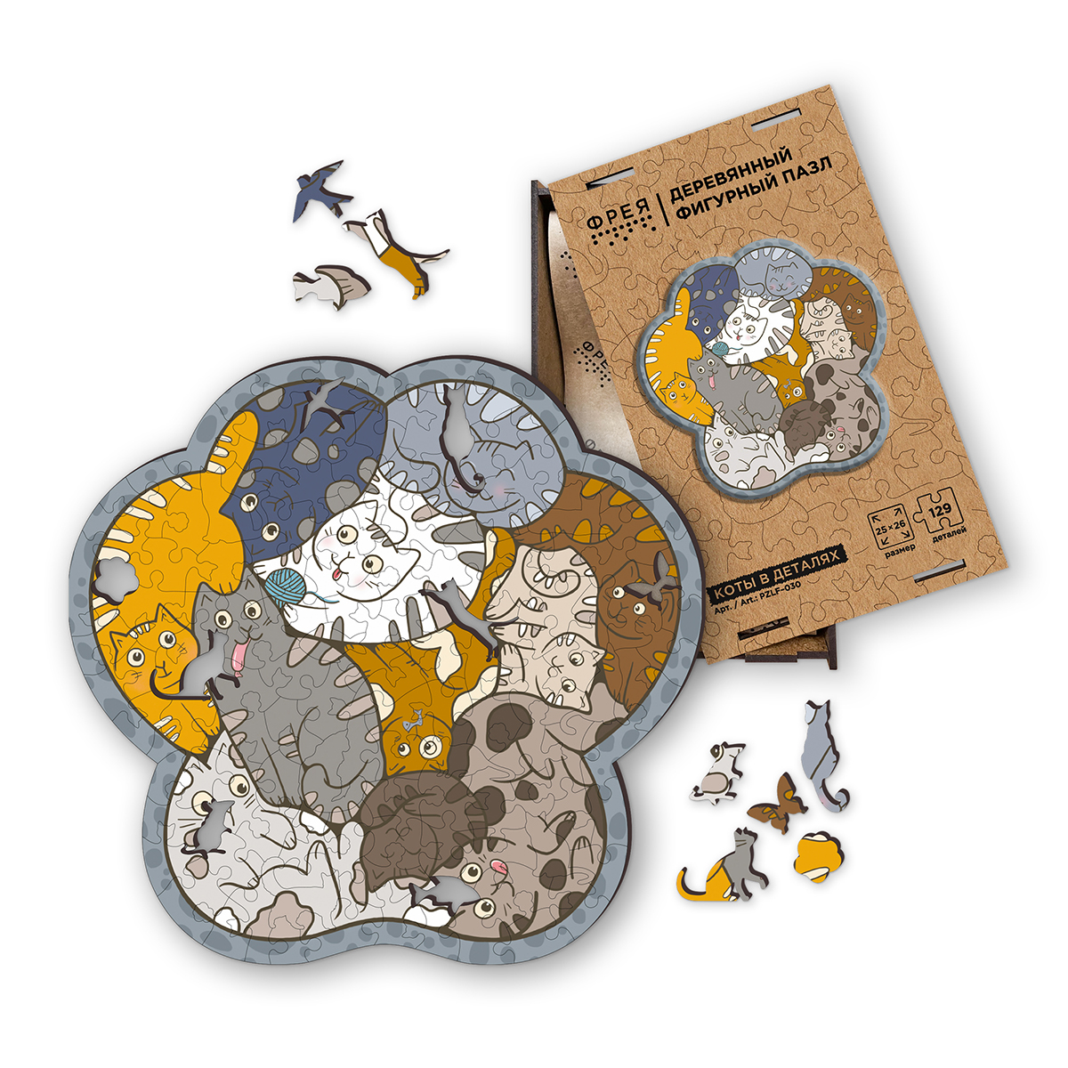 Пазл фигурный деревянный 129 элементов, PZLF-030 Коты в деталях, Фрея