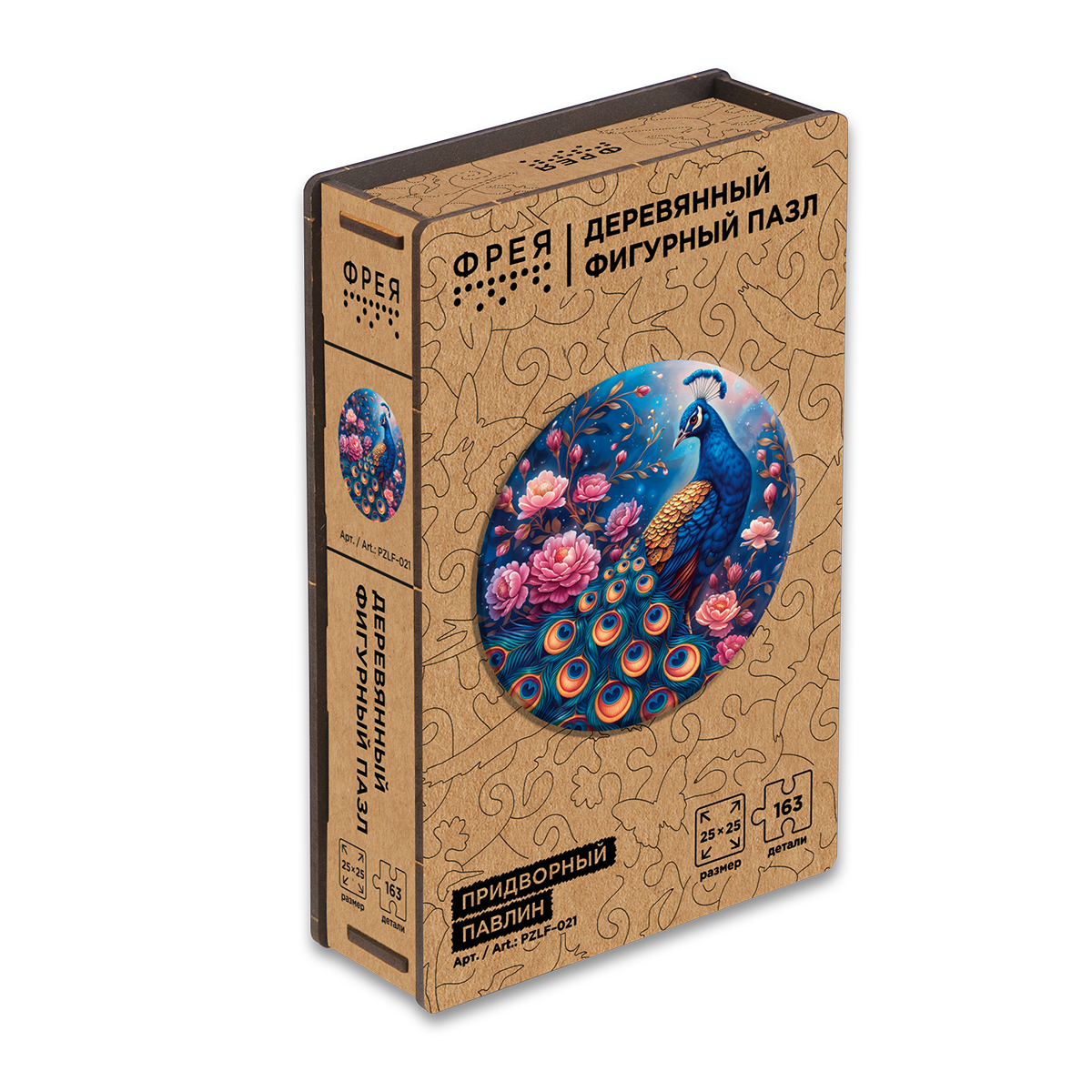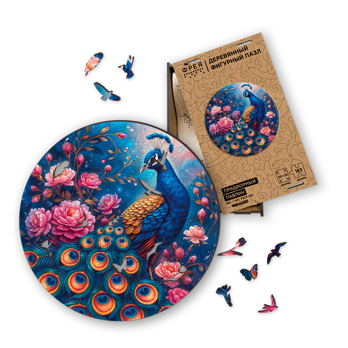 Пазл фигурный деревянный 163 элемента, PZLF-021 Придворный павлин, Фрея