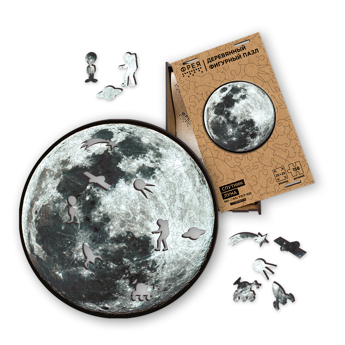 Пазл фигурный деревянный 158 элементов, PZLF-022 Спутник Луна, Фрея