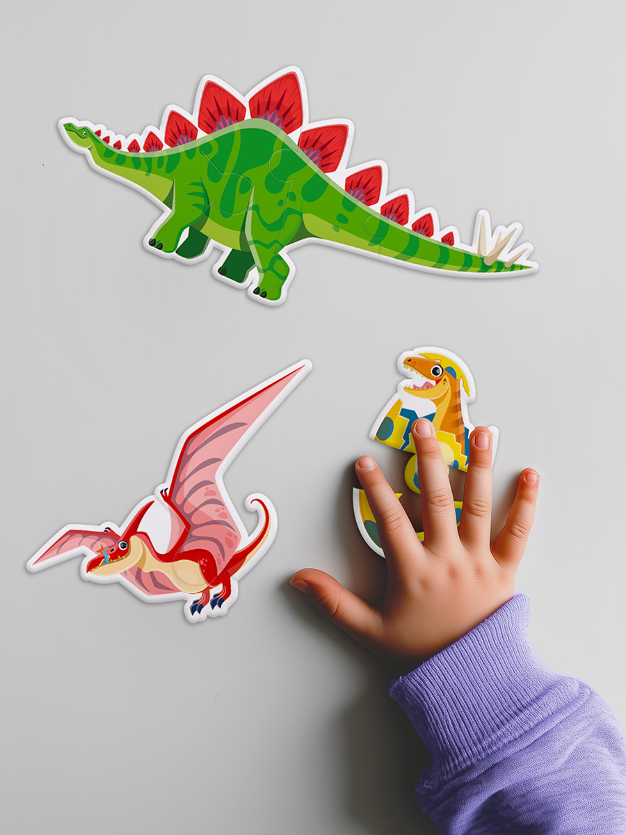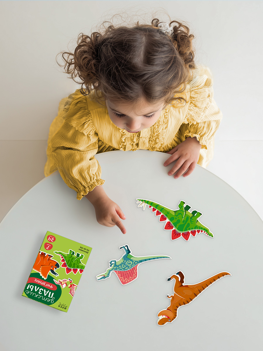 Фигурные пазлы, состоящие из нескольких элементов, учат ребенка собирать цельный образ из частей и развивают пространственное мышление.