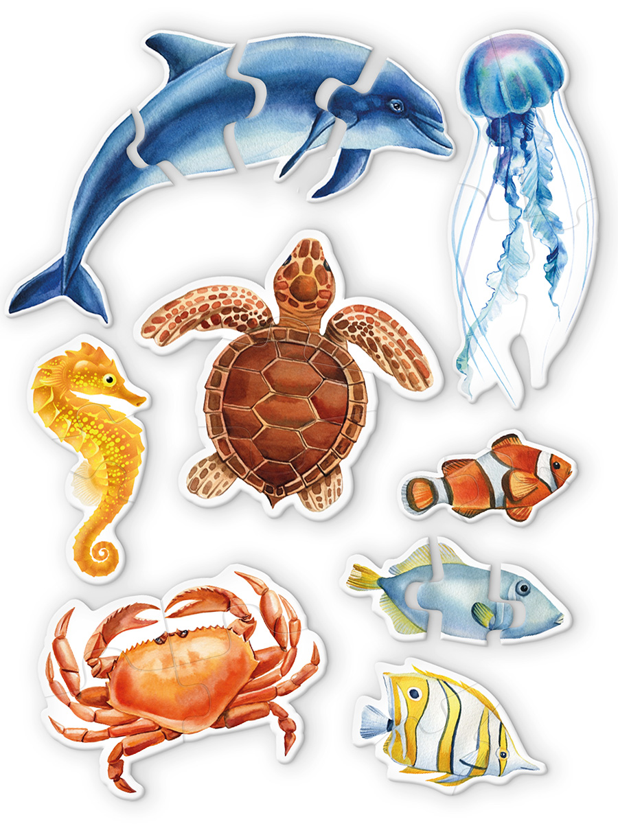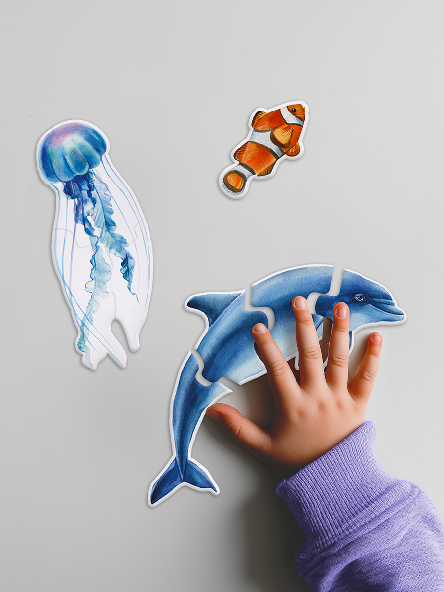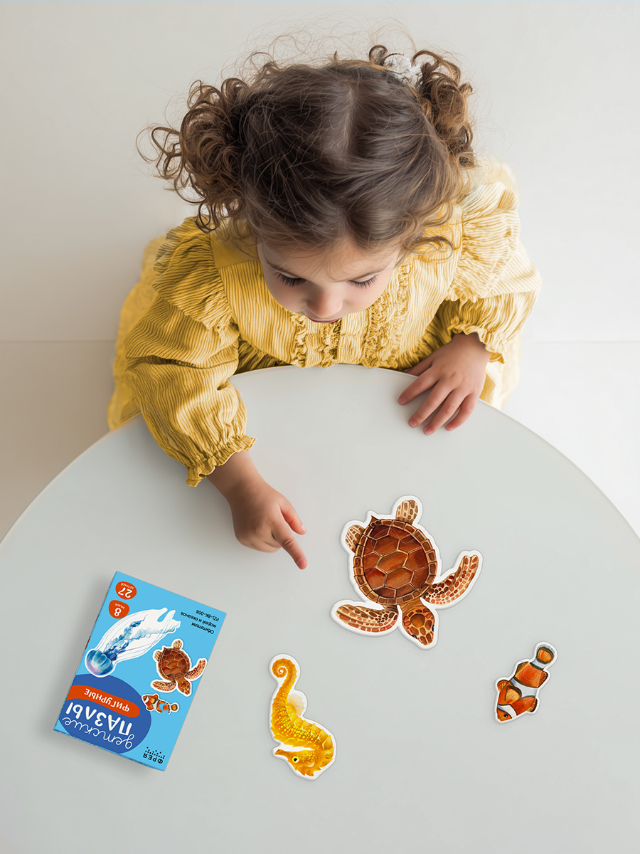 Фигурные пазлы, состоящие из нескольких элементов, учат ребенка собирать цельный образ из частей и развивают пространственное мышление.