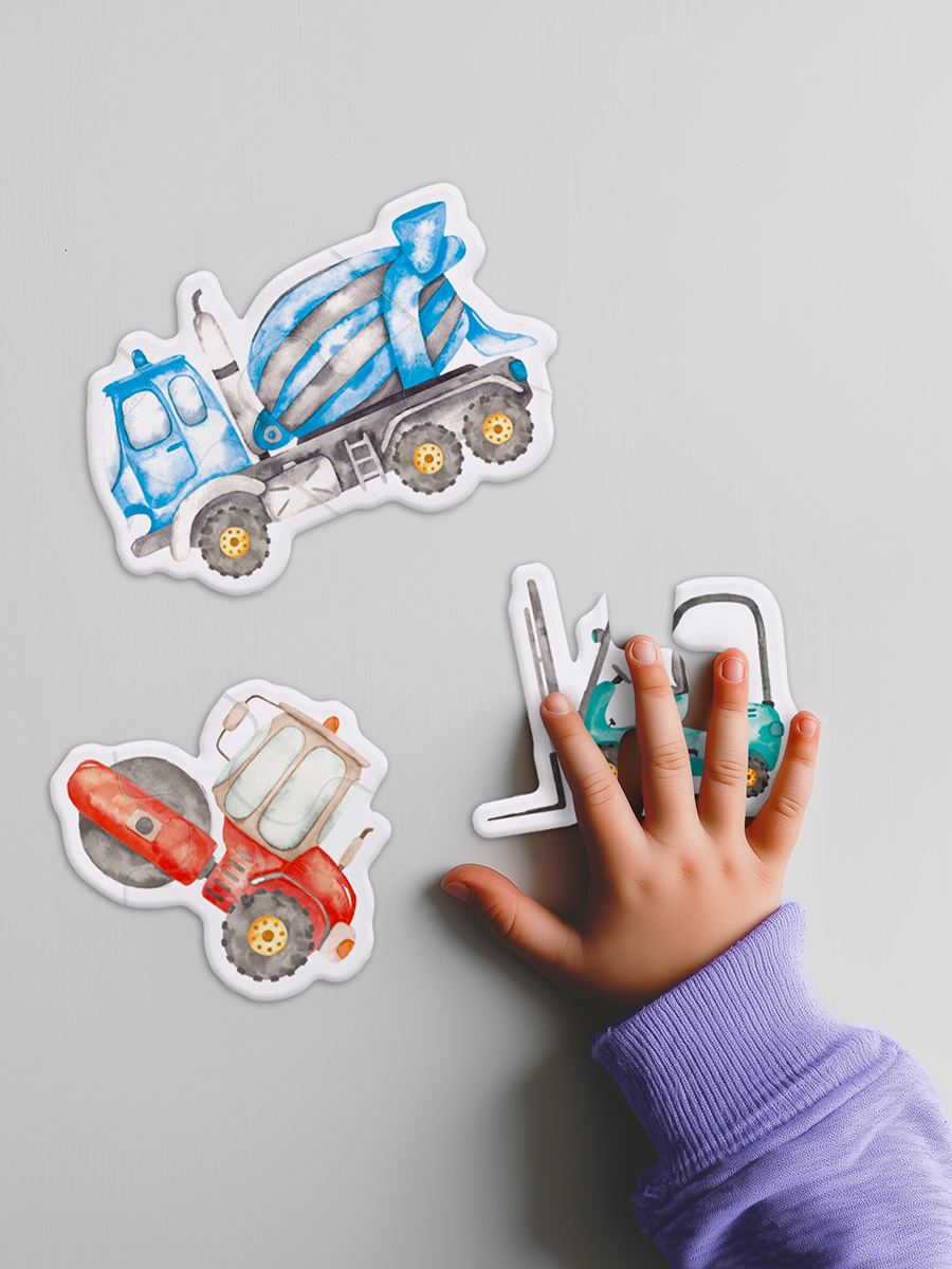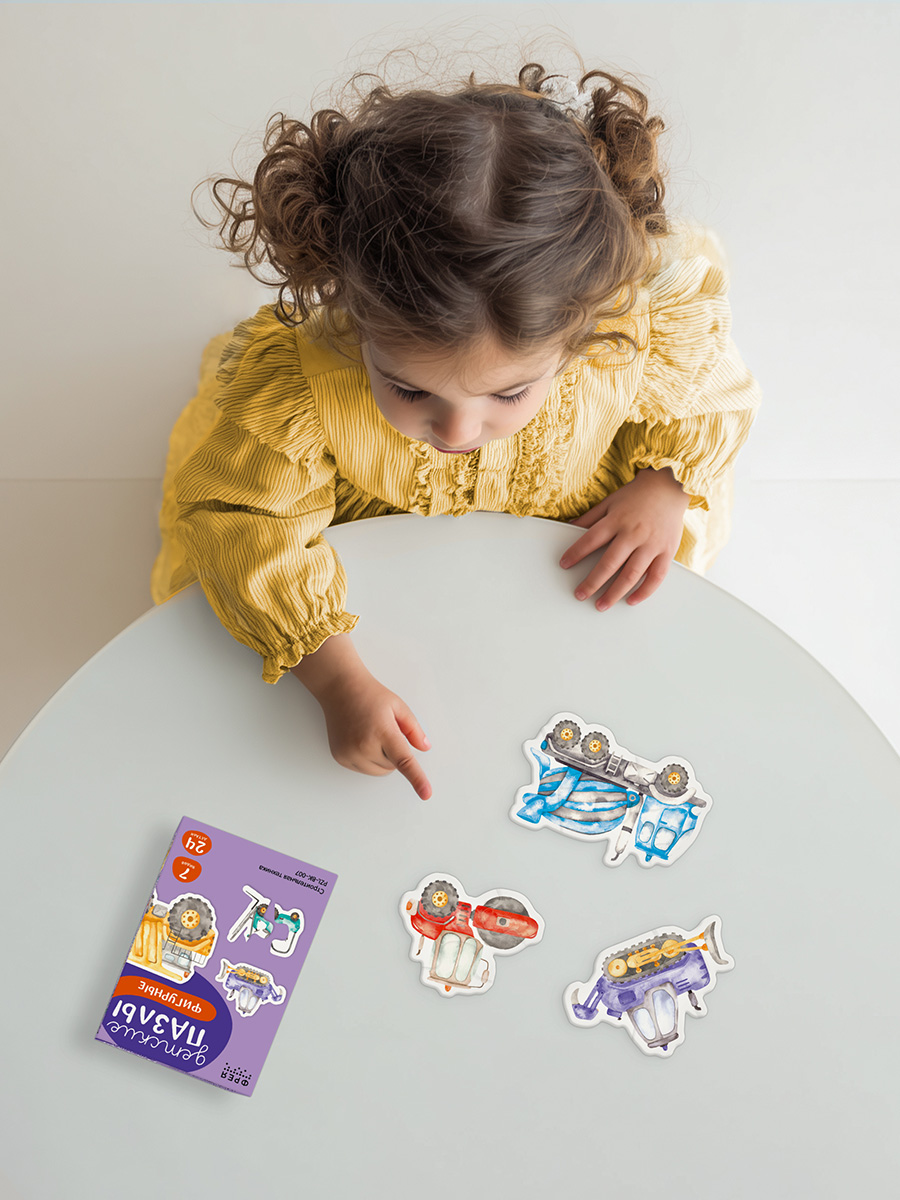 Фигурные пазлы, состоящие из нескольких элементов, учат ребенка собирать цельный образ из частей и развивают пространственное мышление.