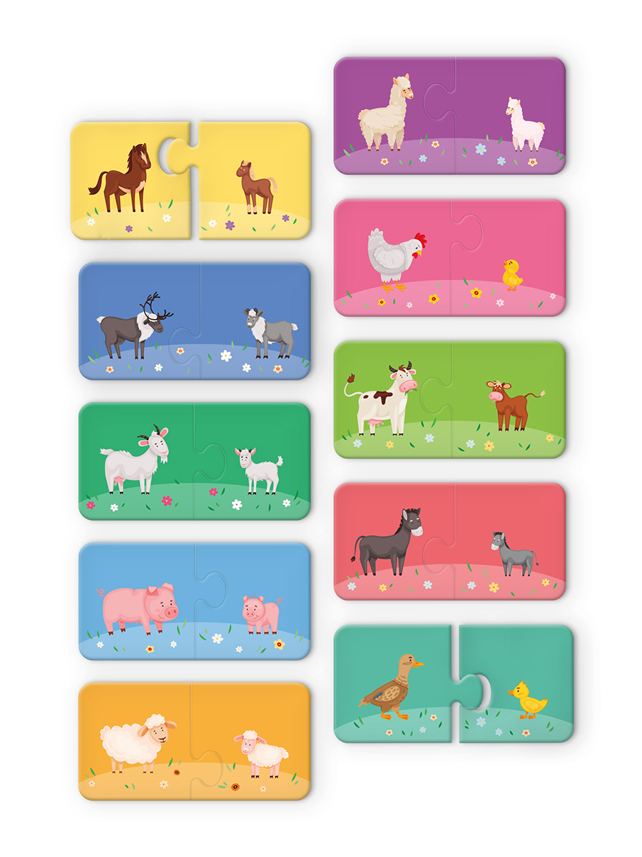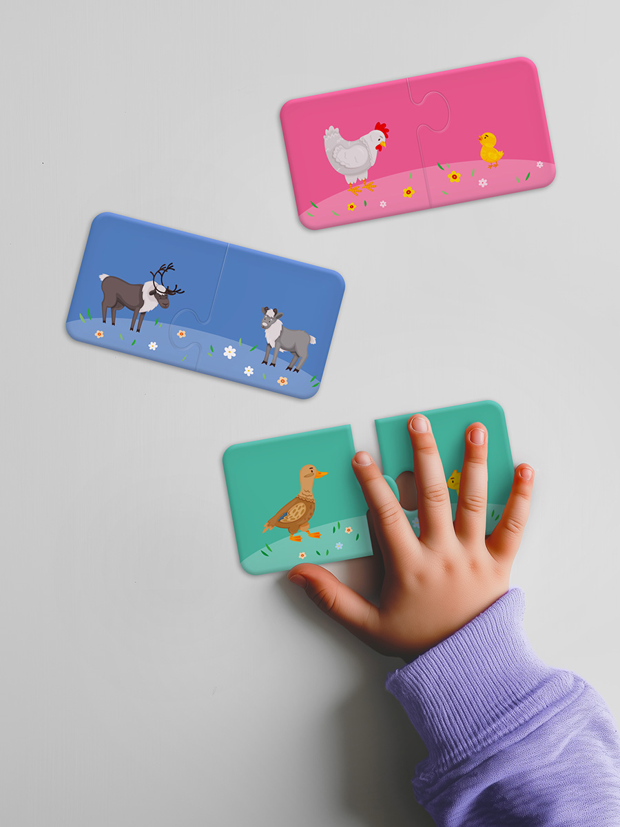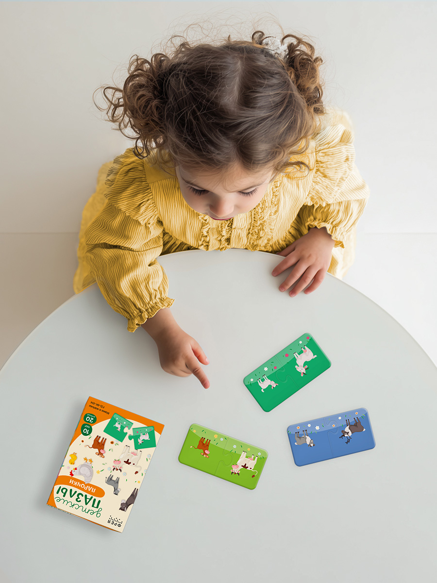 Парные пазлы, где нужно находить логические связи между двумя картинками, тренируют ассоциативное мышление и формируют навыки сопоставления.