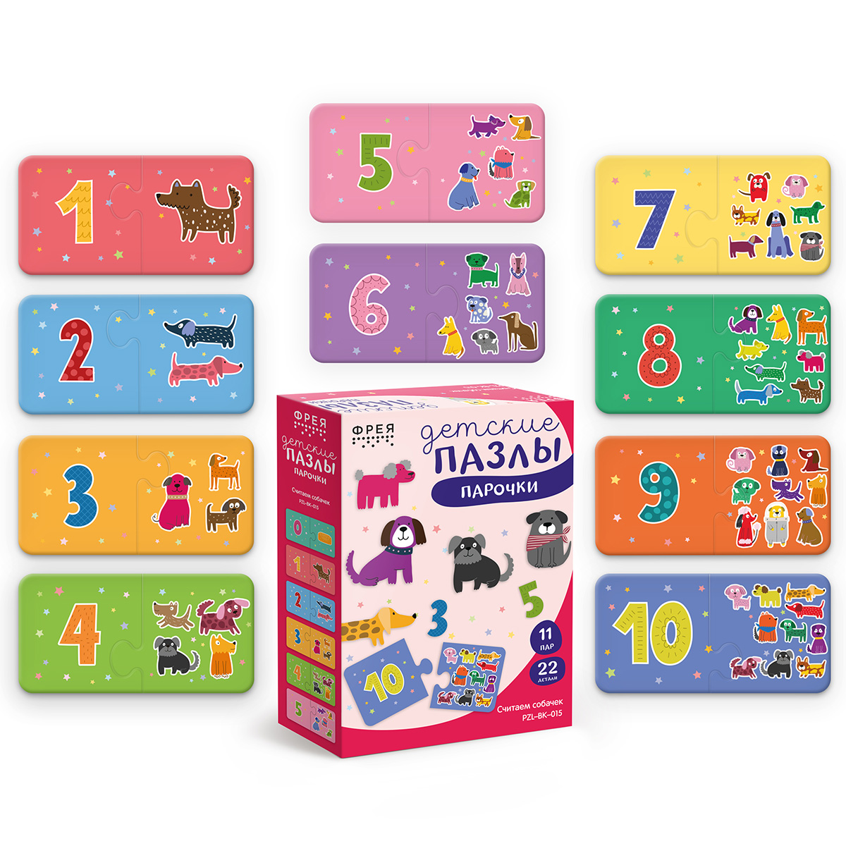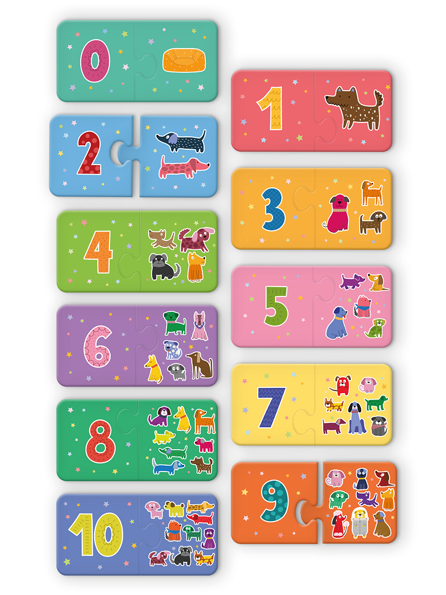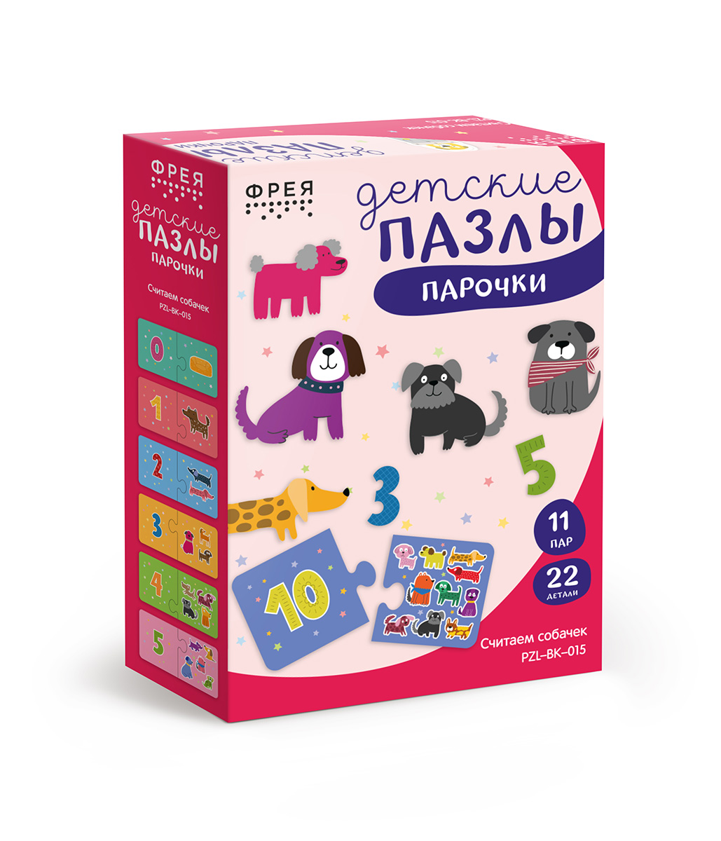 Набор содержит 11 пар пазлов, размером 13х6,5 см.