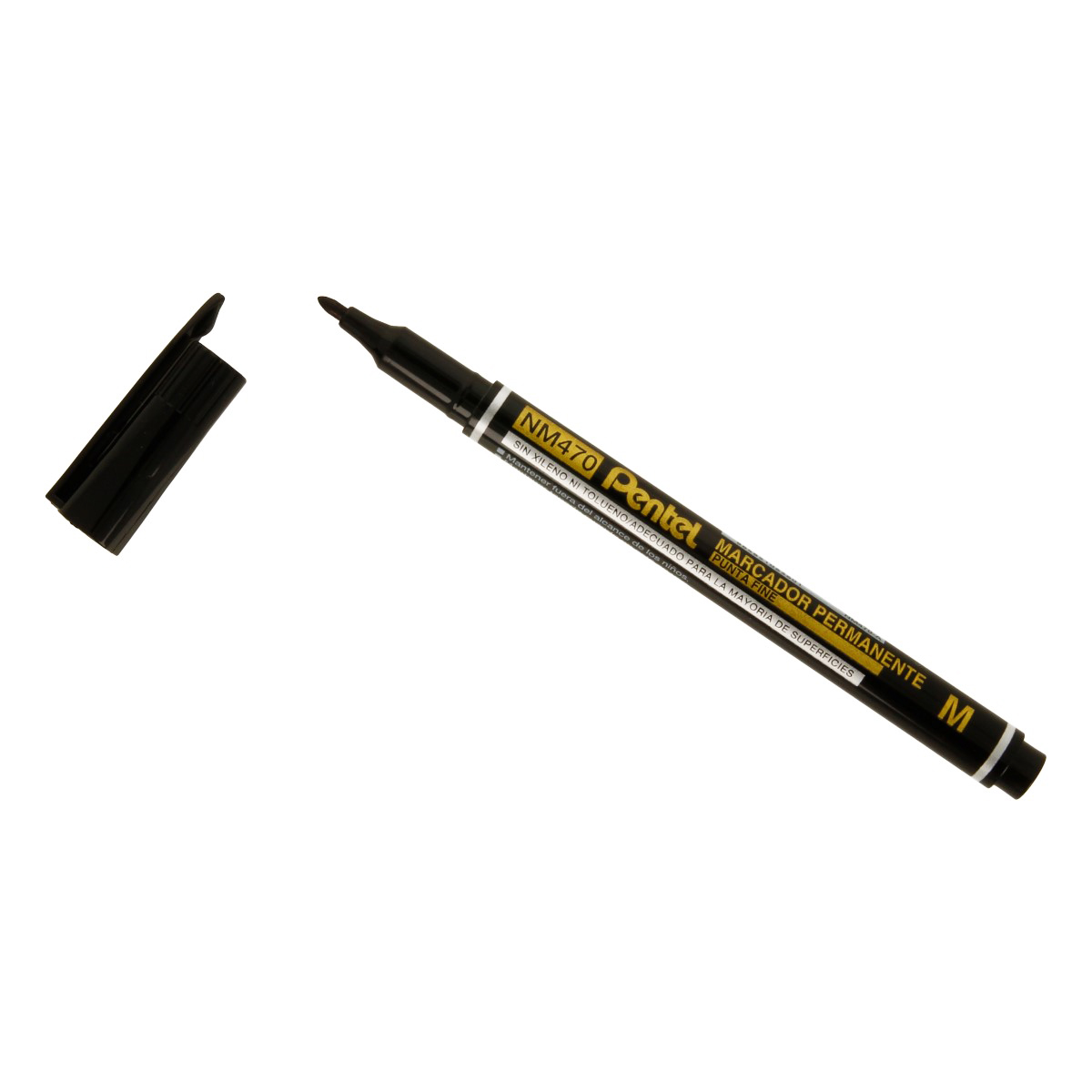 Перманентный маркер 1 мм, Medium Point, 12 шт, черный, Pentel NM470-A
