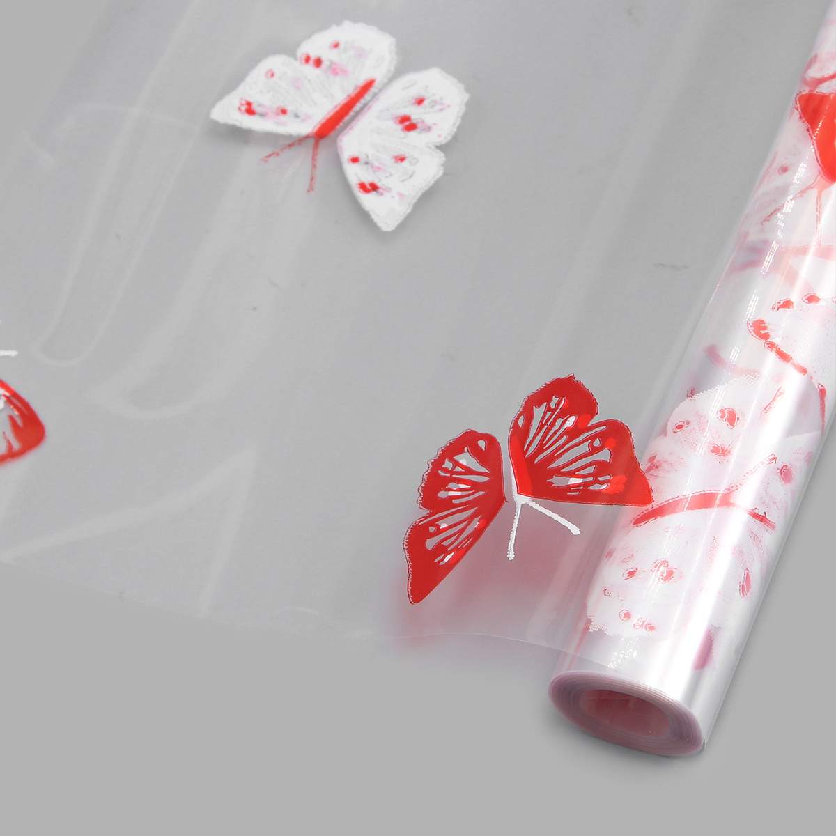 Пленка прозрачная двухцветная с рисунком Бабочки бело-красная 70 см / 9.14±5% метра